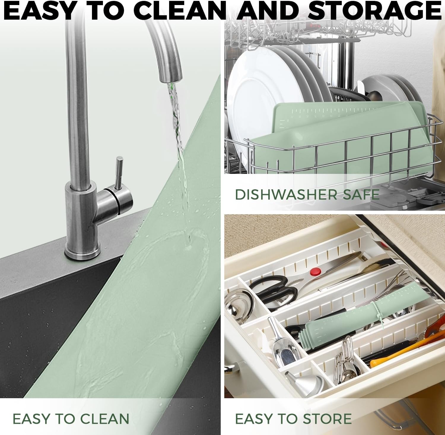 - Easy to clean and store: The smooth surface of the baking mat makes it easy to clean, just rinse the mat with warm soapy water or throw it into the dishwasher, there's no need to scrub again. Every package has a petal silicone tie wrap, it can be rolled up or folded for easy storage. In addition, the side holes can also be easily hung on the kitchen wall and then dry themselves.