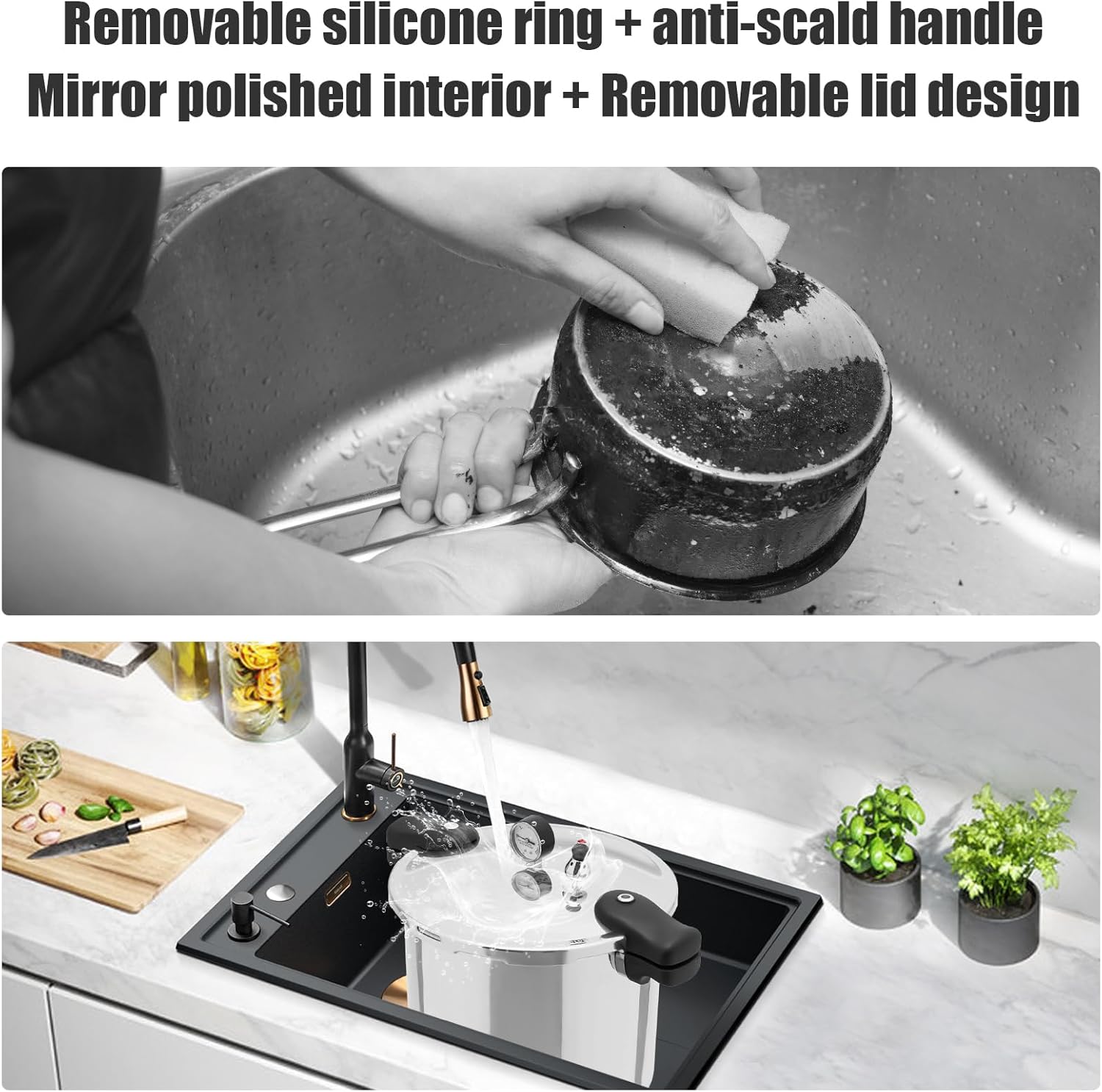 - Triple Protection: Pressure limiting valve automatically relieves pressure + float valve prevents accidental opening of lid + visual pressure gauge accurately monitors accidental over-pressure automatic release, peace of mind