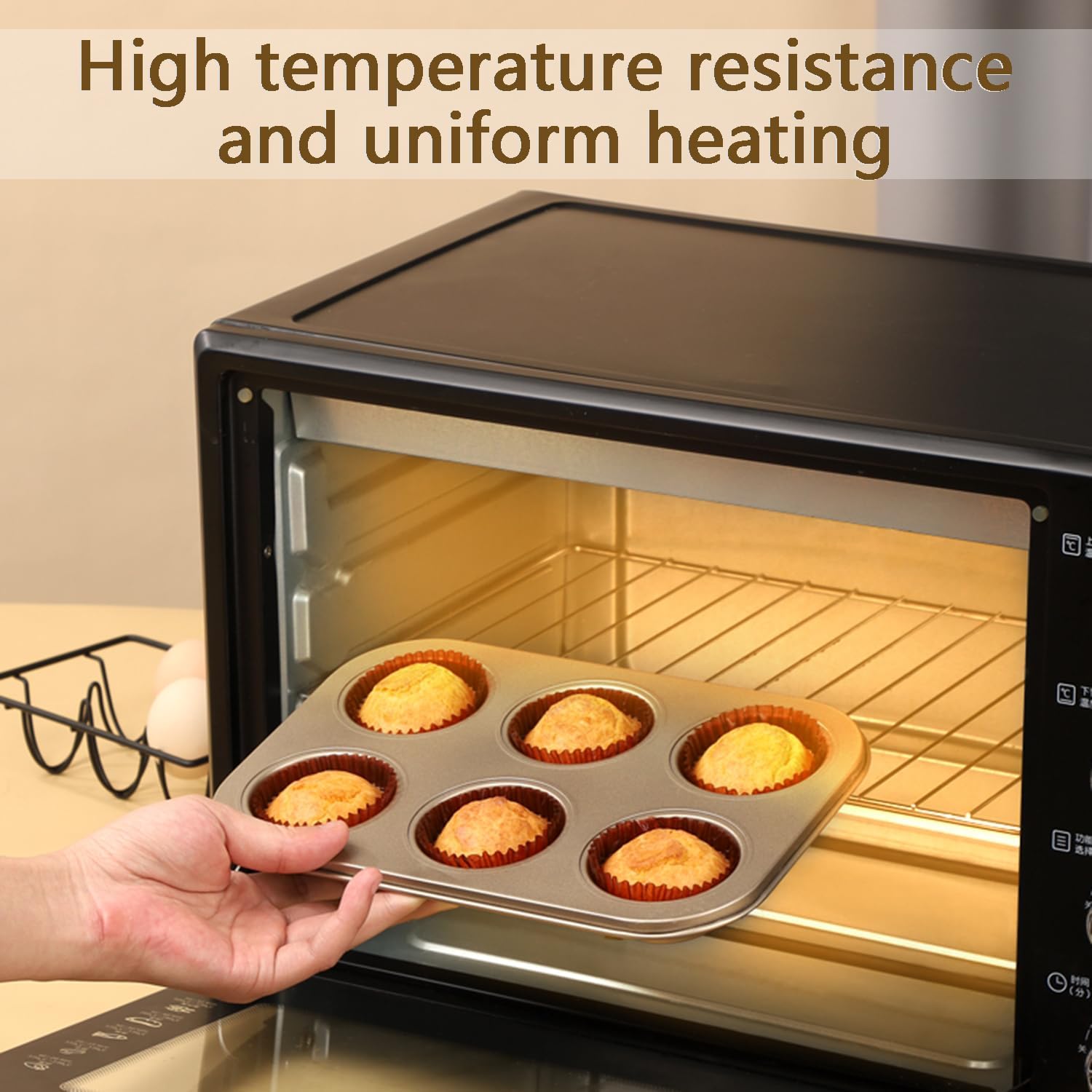 - Superior Material: Our Muffin Pan is made of heavy-duty carbon steel, ensuring high hardness, resistance to warping, and even heat distribution in the oven. The thoughtful rolled edges provide a comfortable grip without hurting your hands, enhancing the baking experience.