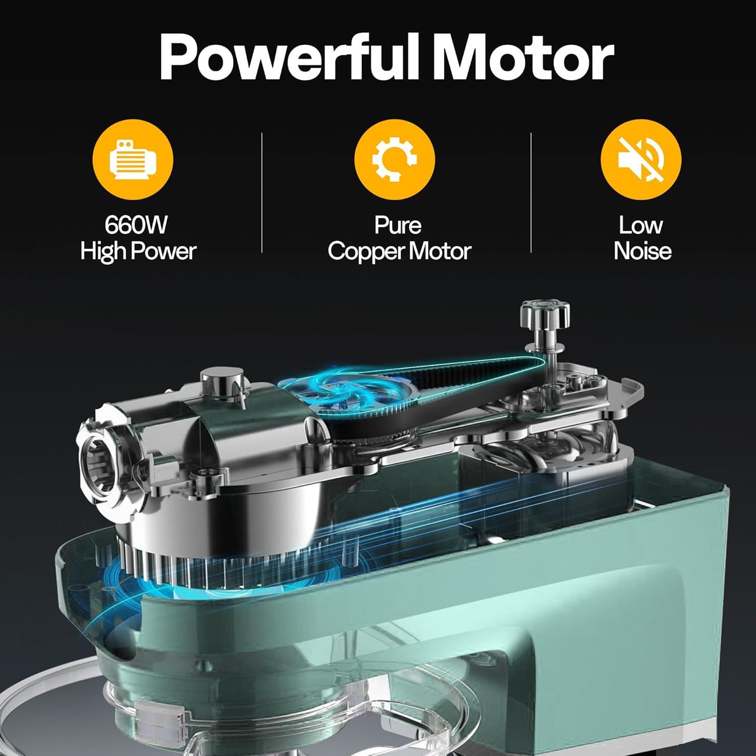 - POWERFUL PERFORMANCE: The VIVOHOME stand mixer is equipped with a 660 W pure copper motor that kneads and mixes faster and more thoroughly than human hands, easily handling all your needs; Its 360° planetary mixing and stirring mechanism ensures the attachments come into contact more evenly with ingredients in the bowl