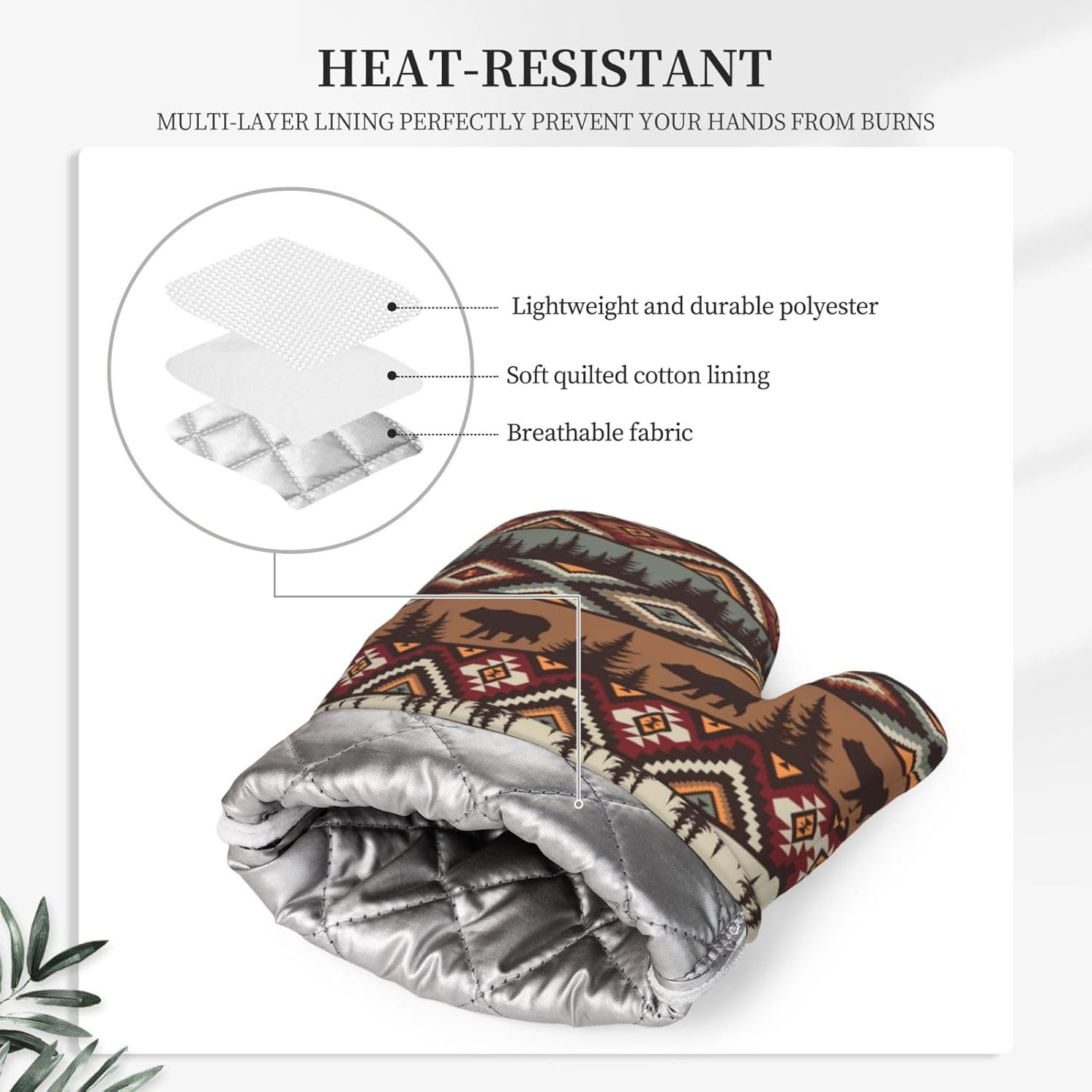 - HEAT RESISTANT DESIGN: These country cabin themed oven mittens heat resistant up to 482°F/250°C, not only protects your hands from high temperatures but also steam and boiling water. Bring you and your family a safer protection. Enjoy your cooking time. To keep safe-Do not use oven mitt over an open flame.