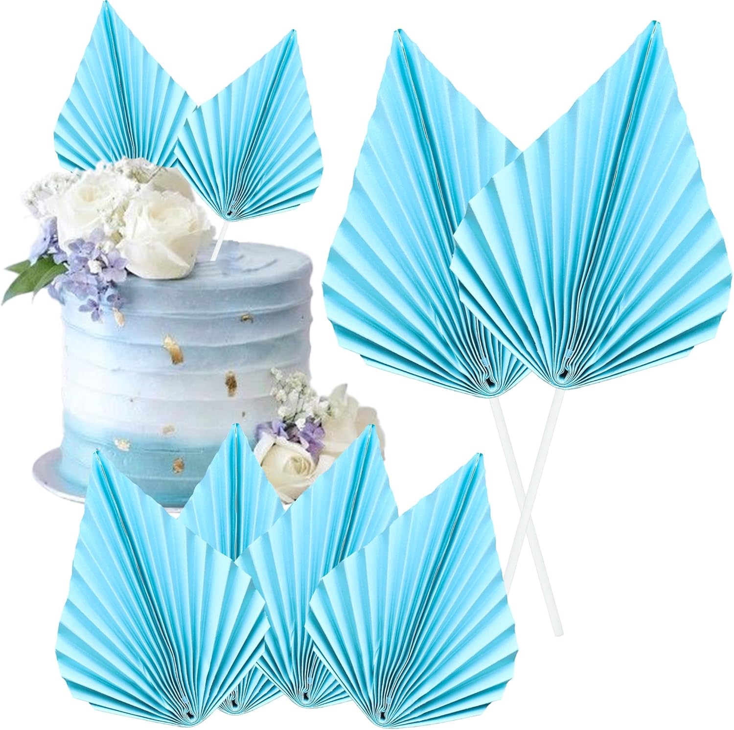 - -Package included: 6Pcs Paper Palm Fan Cake Toppers. Comes with unassembled, so you can insert into your cake with stick, which make your cake more interesting.