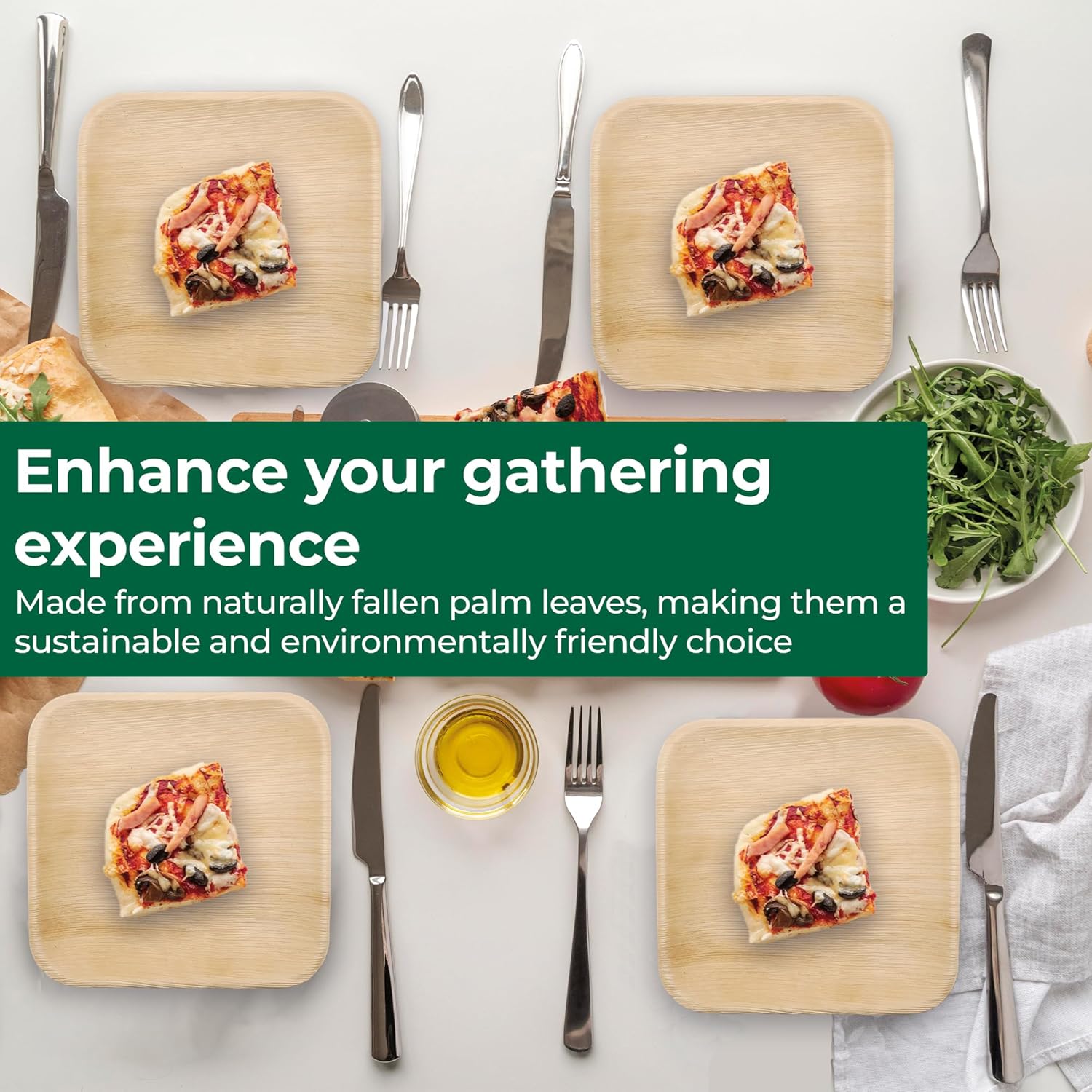 Palm Leaf Disposable Plates - Bamboo Plates Disposable 7" &10" Inch Square (25pc 7" & 25pc 10") - 100% Compostable & Biodegradable Plates - Heavy-Duty, Party Dinnerware Set - Microwave & Oven