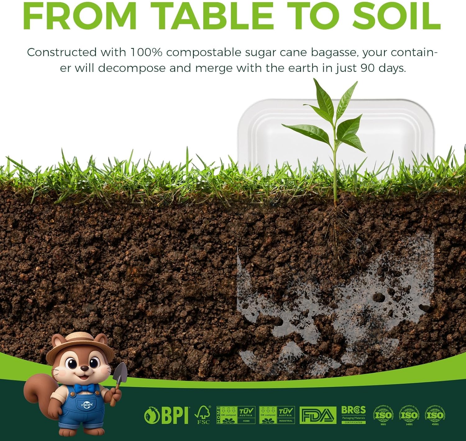 - Plant-Based Natural Material: Crafted from sugarcane bagasse fiber, a byproduct of sugarcane juice extraction, these trays are tree-free and plastic-free, making them an eco-friendly choice for food service.