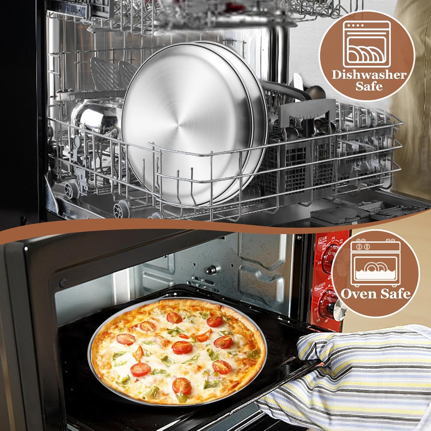 - Dishwasher Safe: The pizza pan with brushed smooth surface for less sticking and easily releasing, Dishwasher safe to save your hassle, Effortlessly clean up even in hand-wash, Allowing you to enjoy your easy baking time