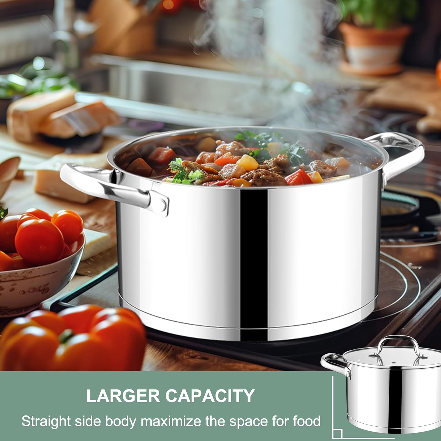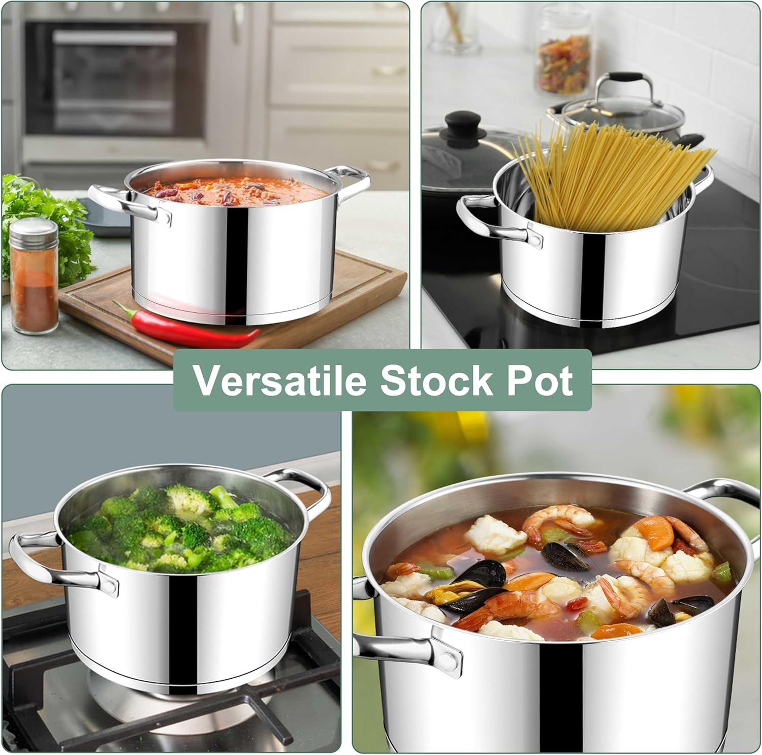 - HEALTHY & DURABLE STAINLESS STEEL POT: Made of food-grade stainless steel that is nontoxic and safe for everyday high-heat cooking, Good stability, rust and corrosion resistance steel with flat thick bottom maintains it shape to ensure longevity, Prevent hot spots to reduce smoke to provide a healthy cooking
