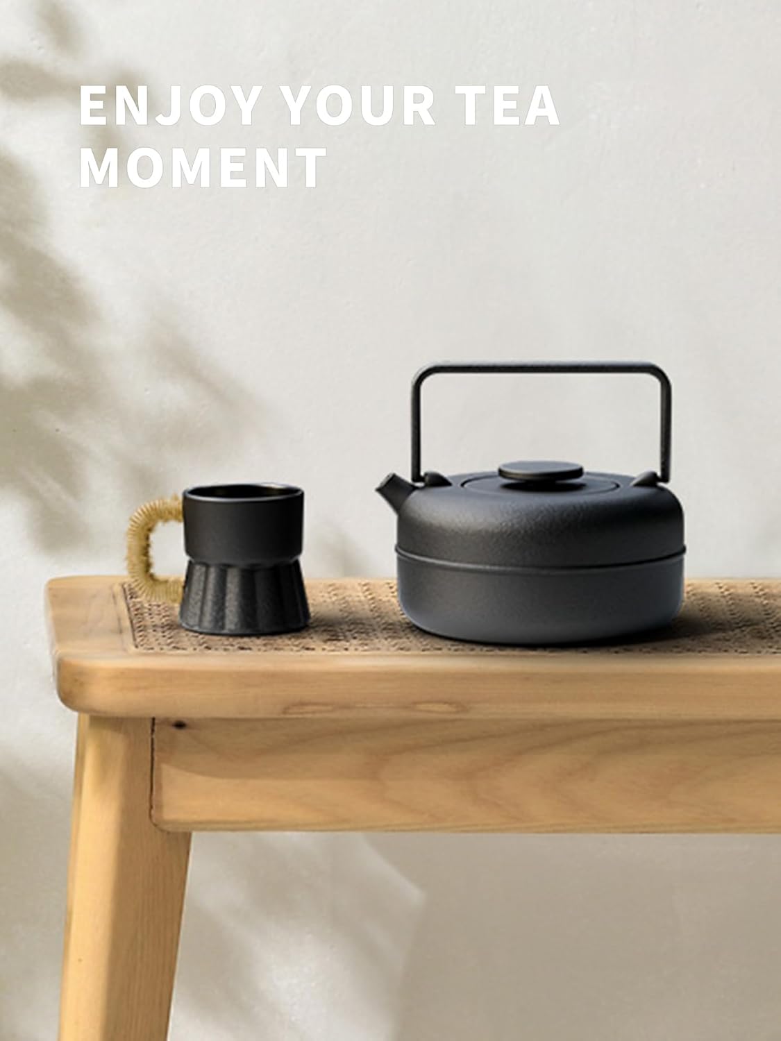Toptier Teapot with Removable Infuser, Cast Iron Tea Kettle Stovetop Safe, Solid Geometry Cylinder Design Tea Pot Coated with Enameled Interior for 27 Ounce (800 ml), Black