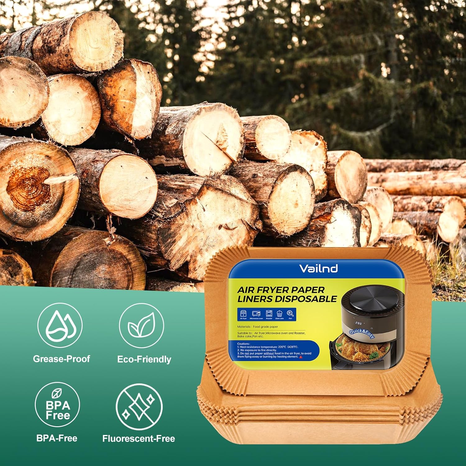 Vailnd Air Fryer Paper Liners Disposable - 50 PCS 8.6x5.5 Inch Rectangle Parchment Paper Sheets, Food Grade Baking Paper for Dual Basket Air Fryer, Oilproof, Waterproof