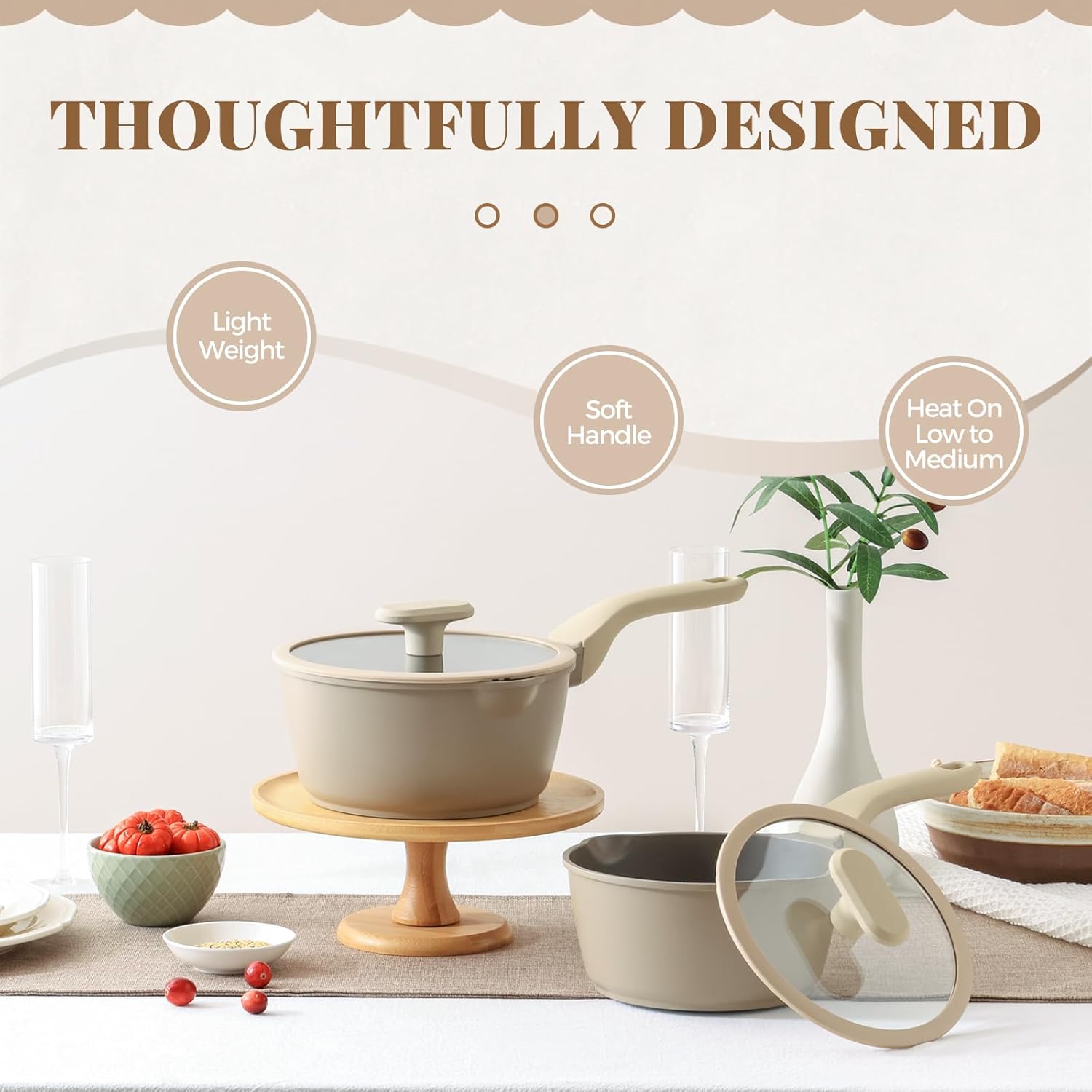 Nonstick Saucepan with Lid, 2 Quart Sauce Pan, Healthy Sauce Pot with Pour Spouts for Multipurpose Use, PTFE, PFOA Free, Induction Compatible, Apricot