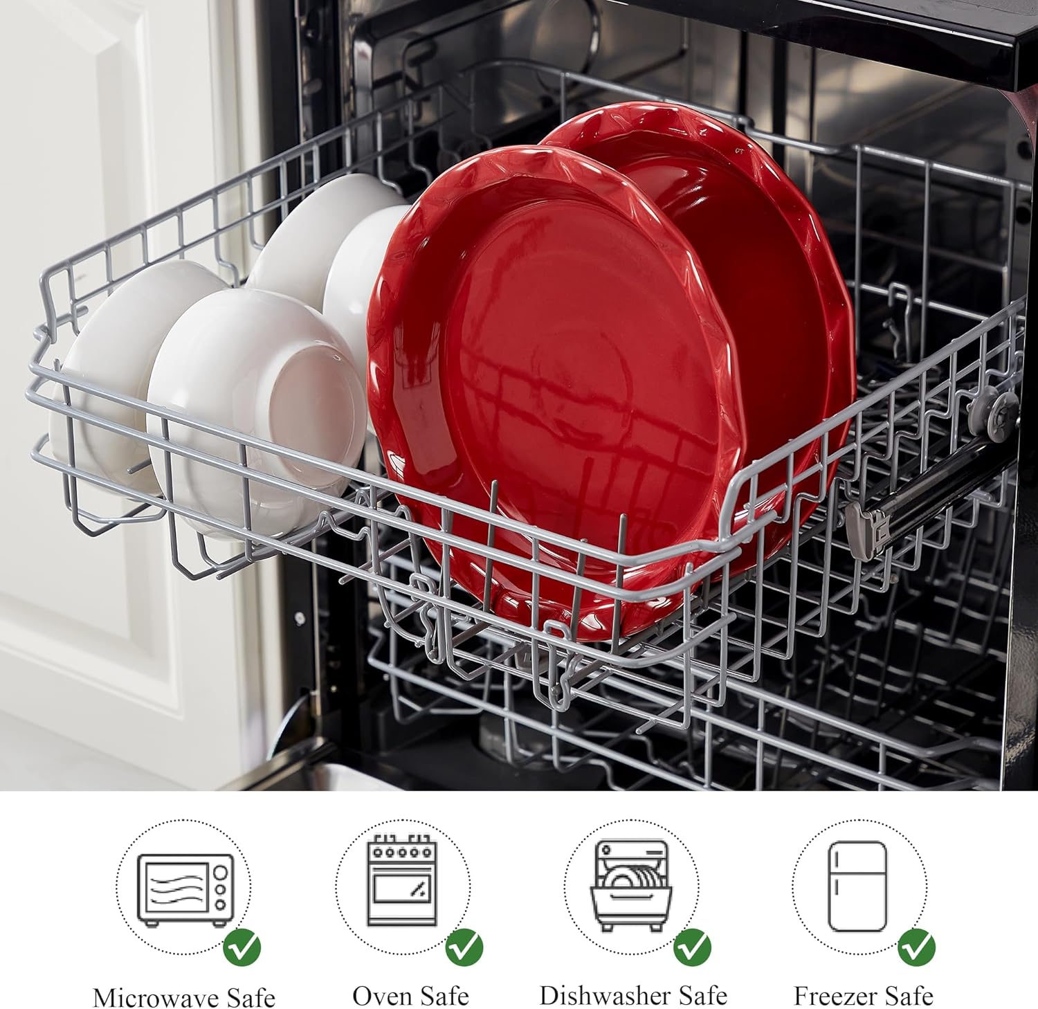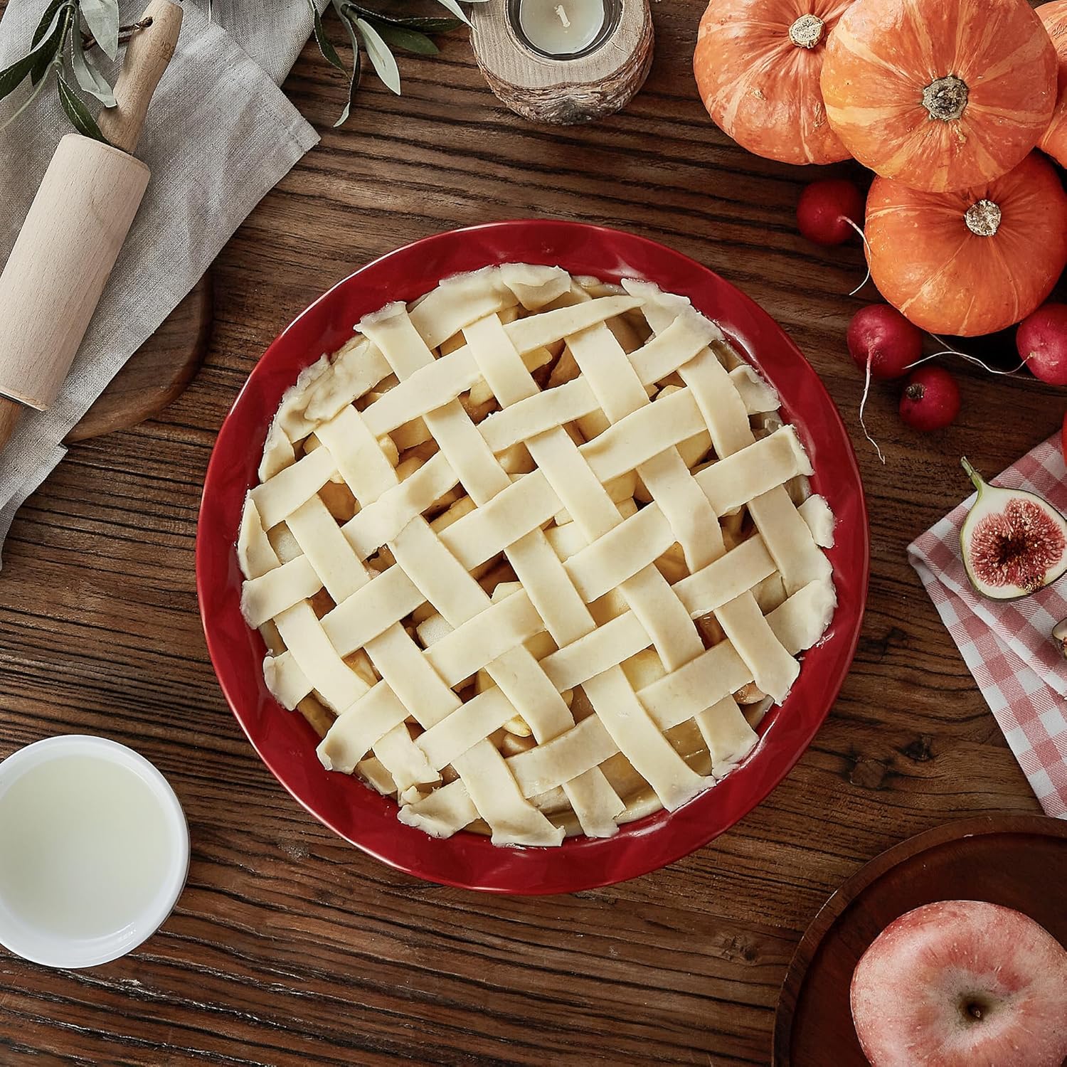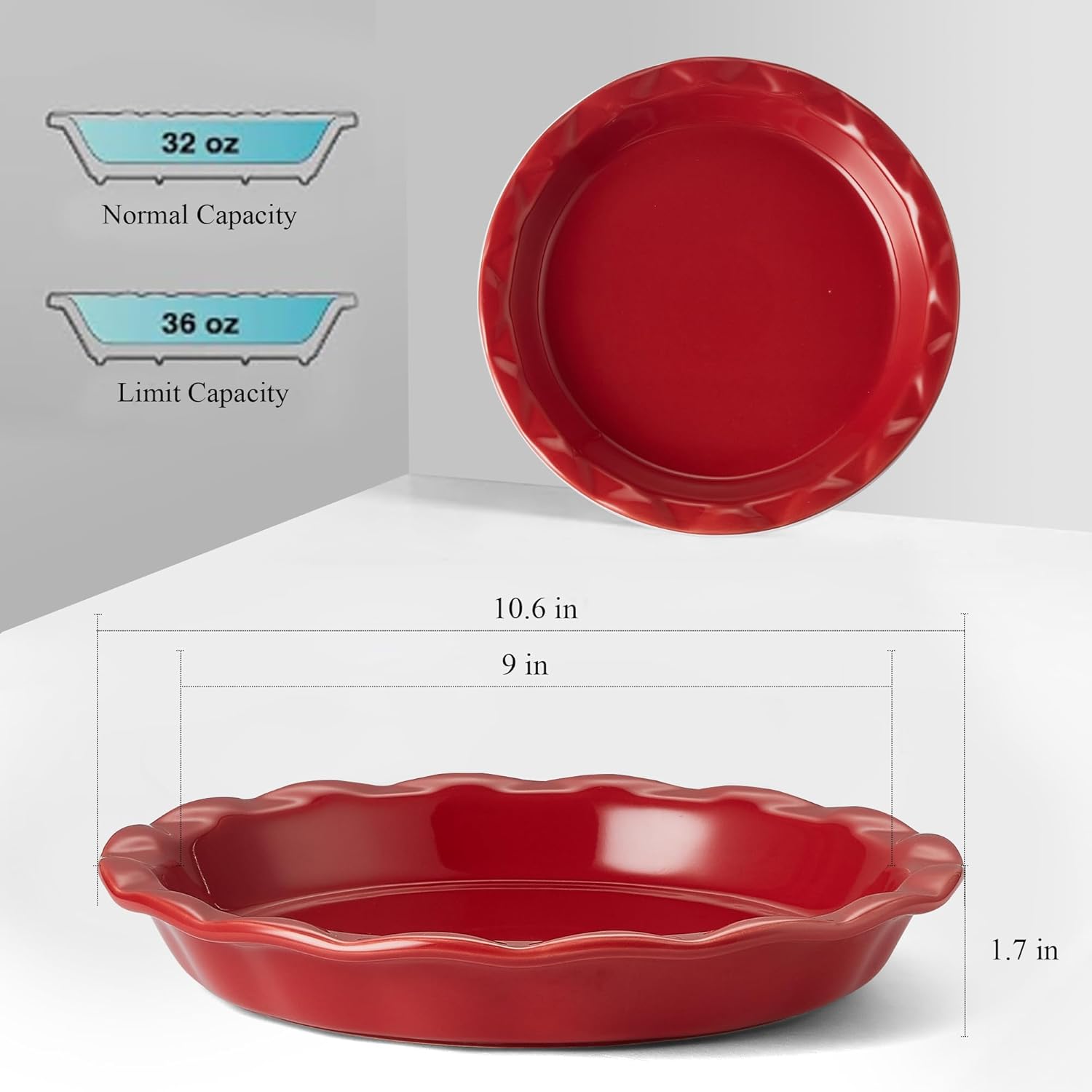 Lareina Ceramic Pie Pans for Baking, 9 Inches Pie Plate for Apple Pie, 36 Ounce Round Baking Dish, Set of 2, Thanksgiving day Gifts for Women, Red