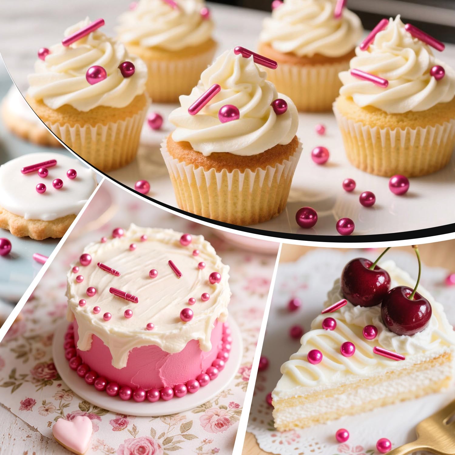 - These Rose Rods Sprinkles can enhance the visual charm of desserts without affecting their taste. Made from top-quality ingredients, they are crafted to enhance the appearance of a wide range of treats like cakes, cookies, cupcakes, donuts, waffles, ice cream, and many others with a charming sparkle.