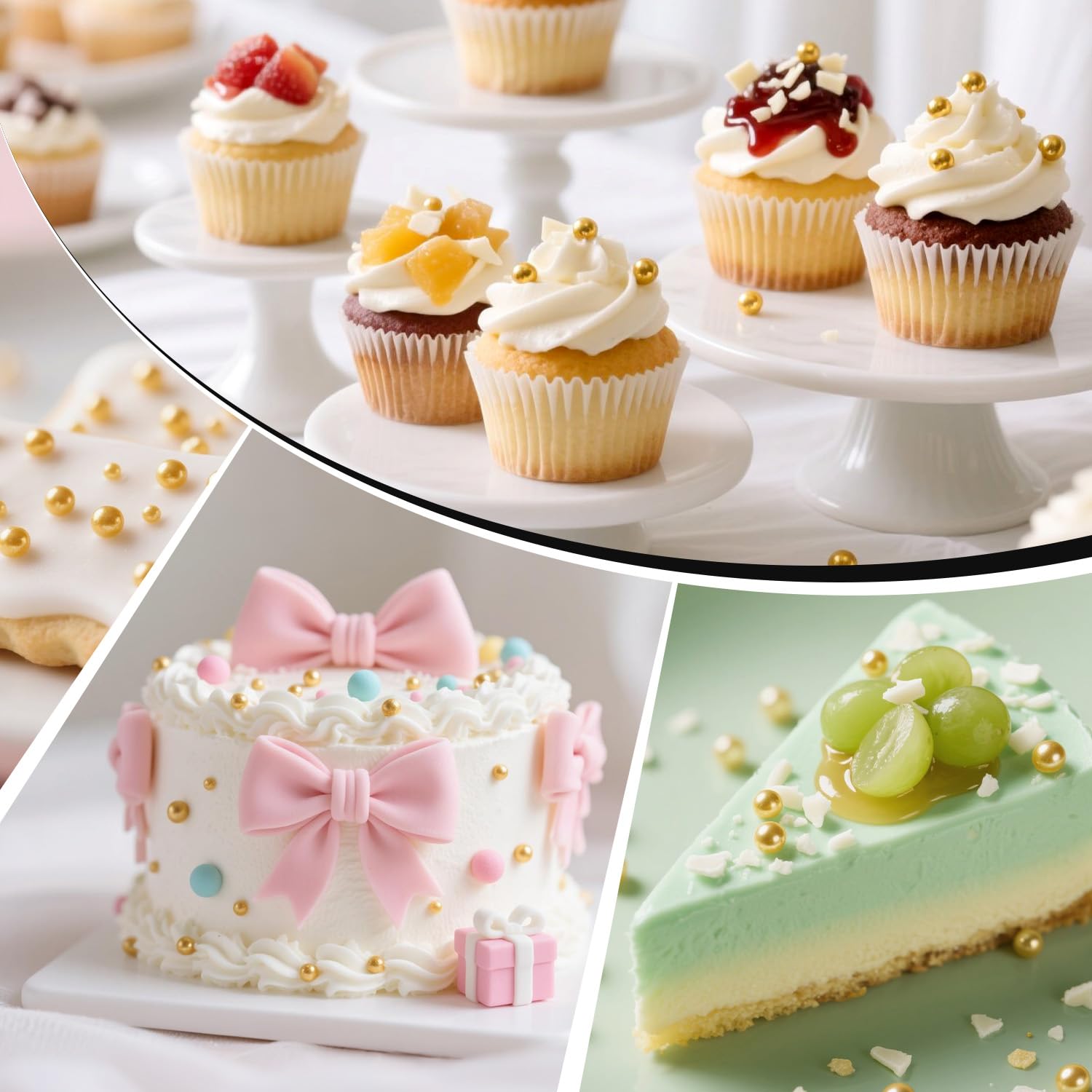 - Our Edible Gold Pearl Sprinkles are gluten-free, nut-free, preservative-free, dairy-free, and free from harmful chemicals, allowing everyone to enjoy the desserts without worry.