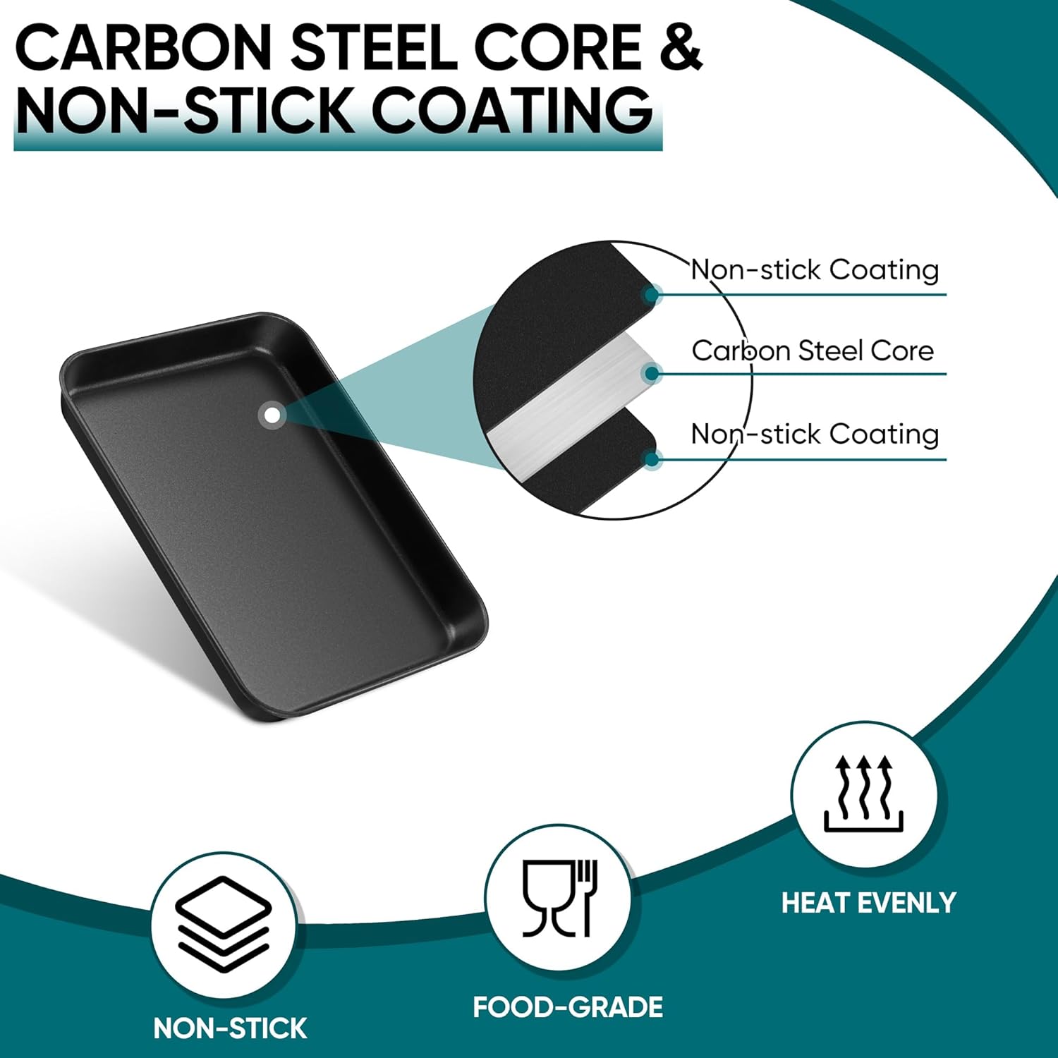 E-far Baking Sheet Set of 2, 10.5" x 8" x 1" Cookie Sheet Pan for Baking, Nonstick Carbon Steel Baking Trays for Toaster Oven, Heat-Resistant & Easy Clean, Black