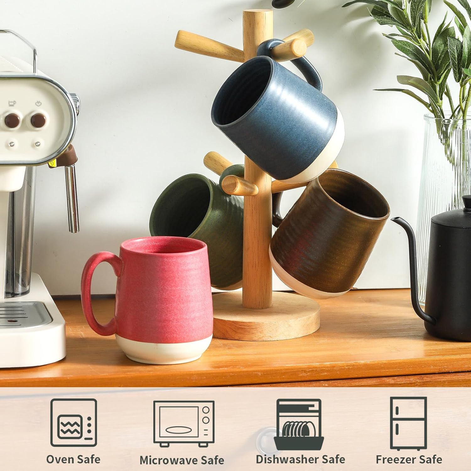 - GENEROUS 15 OUNCE CAPACITY: These ceramic coffee cups hold 15 ounces, making them perfect for coffee, tea, hot chocolate, soups, and desserts; their versatile size meets all your drinking and serving needs