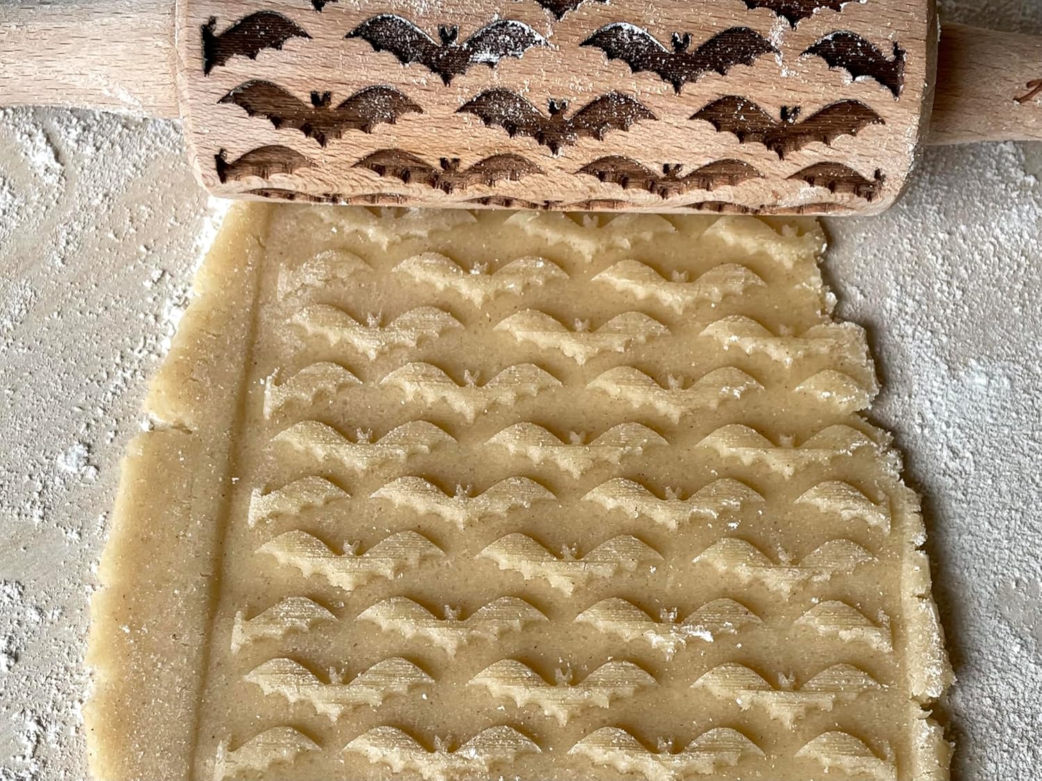 HALLOWEEN 3 Mini Embossed Rolling Pin Set. Wooden Laser Engraved Textured rolling pins for Cookies, Modeline, Ceramic with Skulls, Bats, Halloween by Algis Crafts