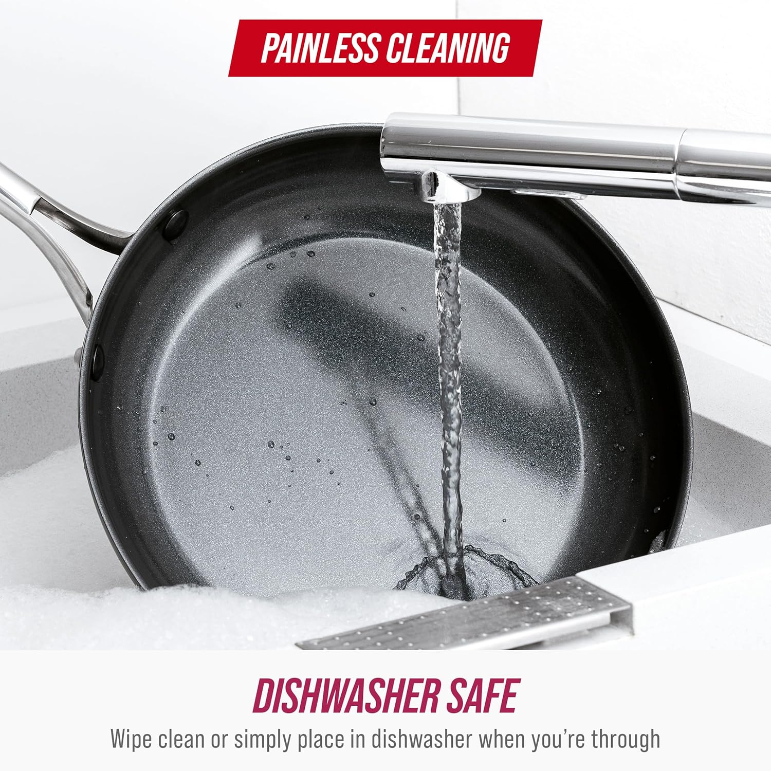 - DIAMOND-TOUGH EXCELLENCE: Metal utensil safe surface with diamond-infused ceramic nonstick - 5x harder and 10x longer lasting than traditional coatings. Tough enough for your toughest recipes!