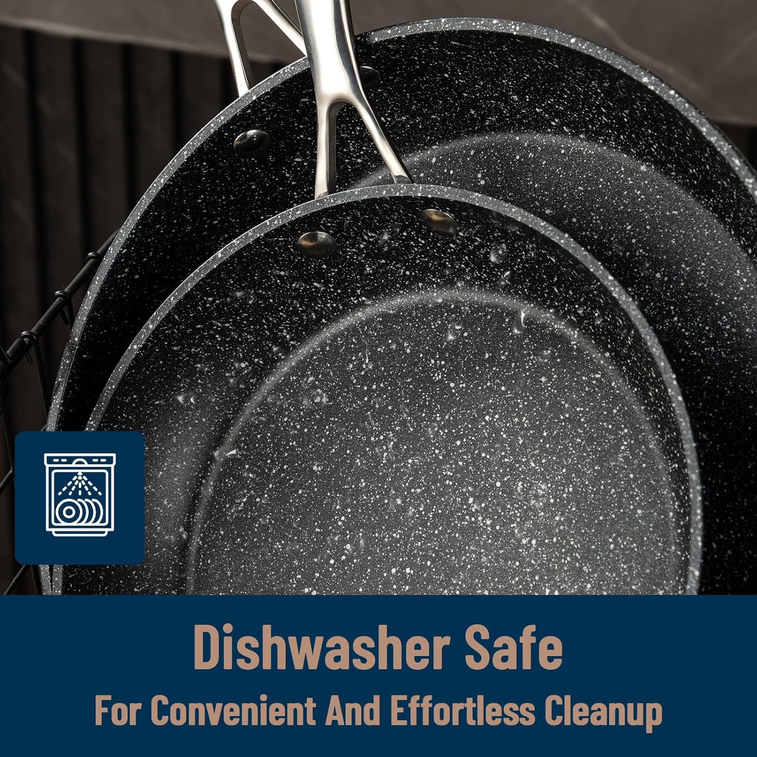 - Versatile Sizes: The 2 piece frying pan set includes an 9.5-inch and 12-inch cookware set, These sizes are perfect for cooking a variety of dishes, from individual portions to family portions