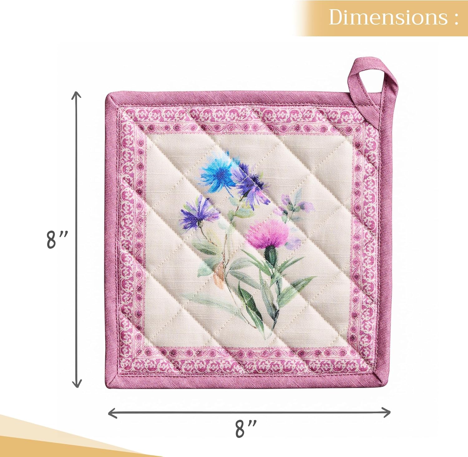 Maison d' Hermine Pot Holders 100% Cotton Heat Resistant Potholders 8" x 8" Hot Pads with Loop BBQ, Cooking, Baking, Grilling, Kitchen, Handling Hot Pans Spring/Summer (Pack of 1, Chardon)