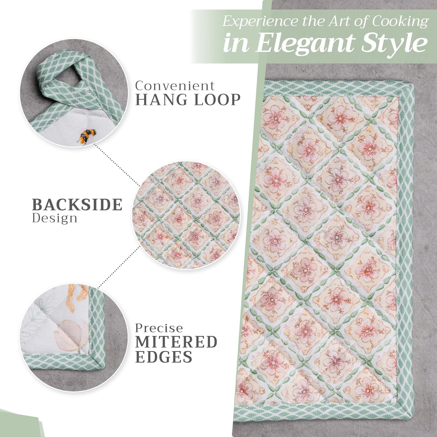 Maison d' Hermine Pot Holders Set 100% Cotton Heat Resistant Potholders 8" x 8" Hot Pads with Loop BBQ, Cooking, Baking, Grilling, Kitchen, Handling Hot Pans Spring/Summer (Pack of 2, Easter Dew)