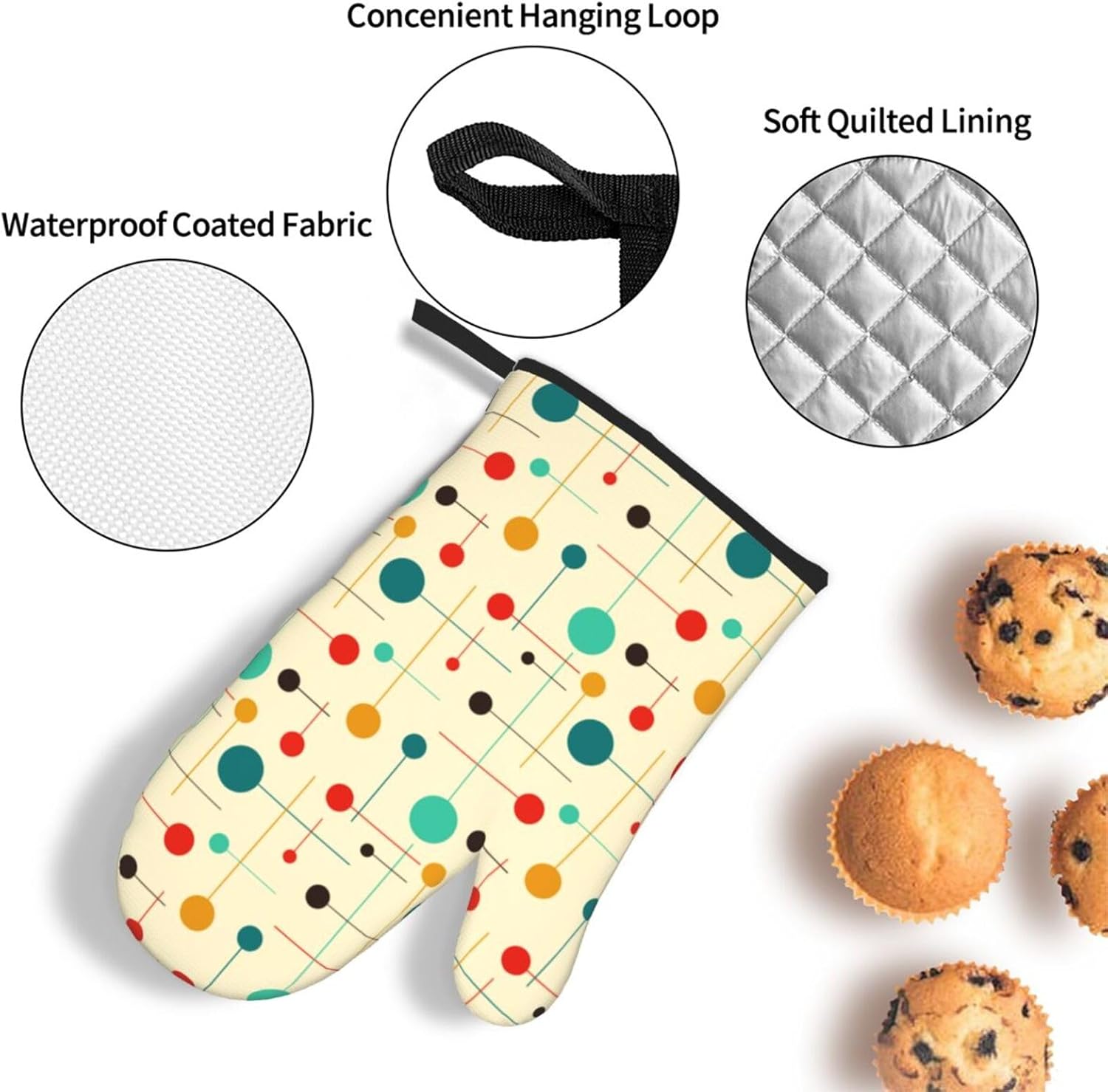 Mid Century Modern Atomic Retro Oven Mitts and Pot Holders Sets of 3 Heat Resistant Yellow Hot Pads Oven Gloves for Kitchen Cooking BBQ Baking