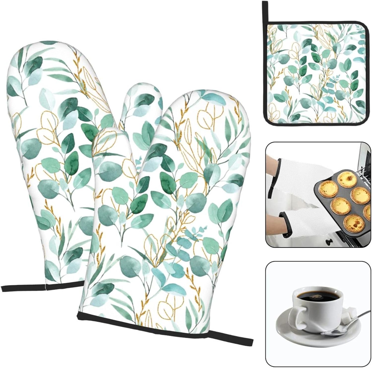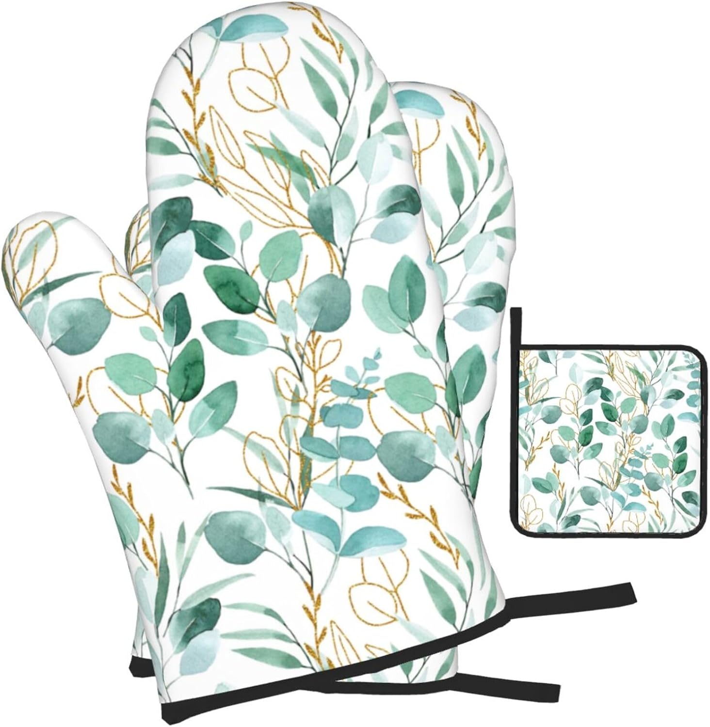 - Material: Oven mitts and pot holders sets include 2 baking gloves and 1 pot pads. Kitchen decor oven mitts are made of heat resistant polyester fabric, soft quilted cotton lining making, non-slip, heat resistant