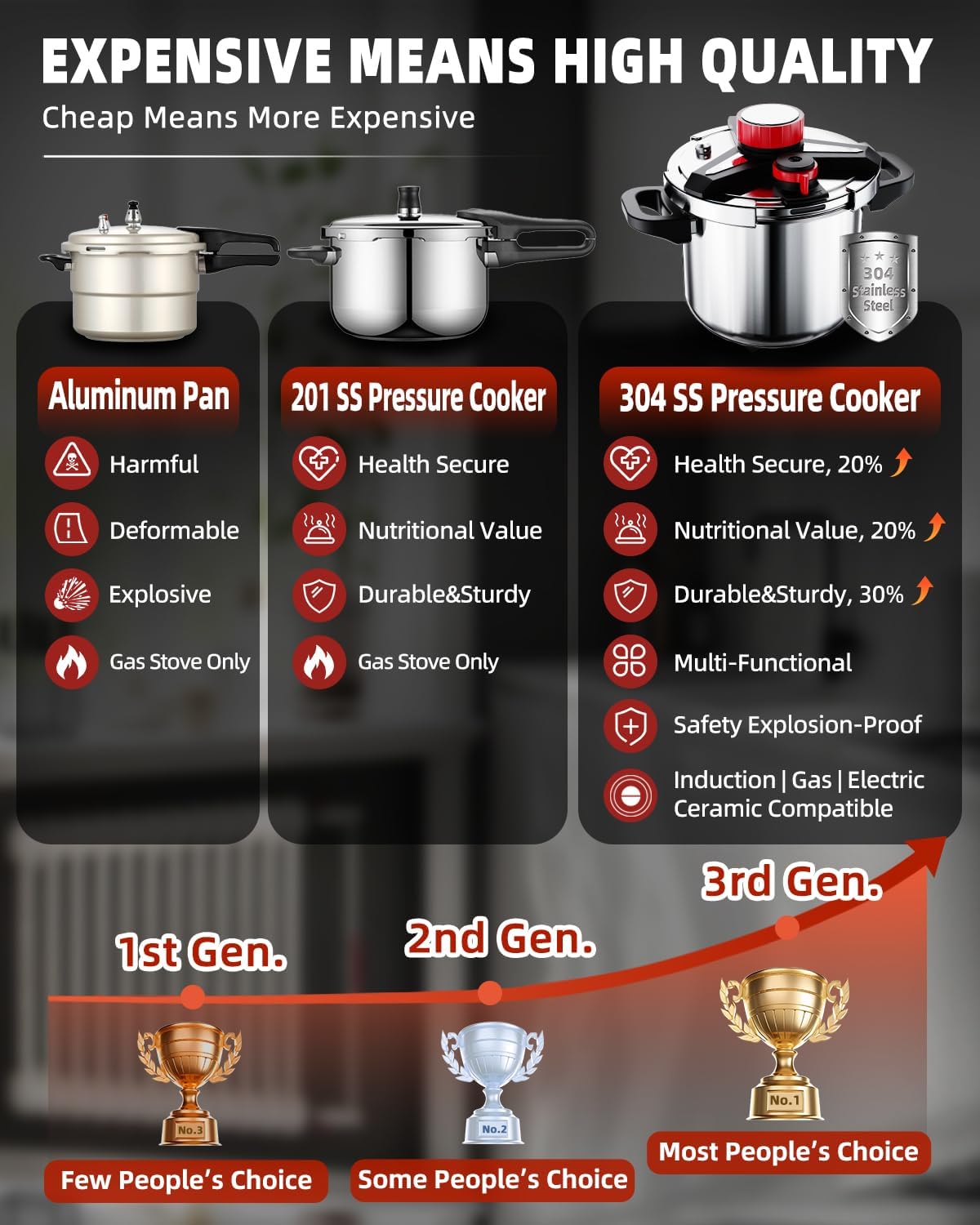 - DURABLE 304 SS CONSTRUCTION, COOKS UP TO 70% FASTER - Constructed of high-quality explosion-proof 18/8 stainless steel, ensures optimal cooking and long-lasting performance.