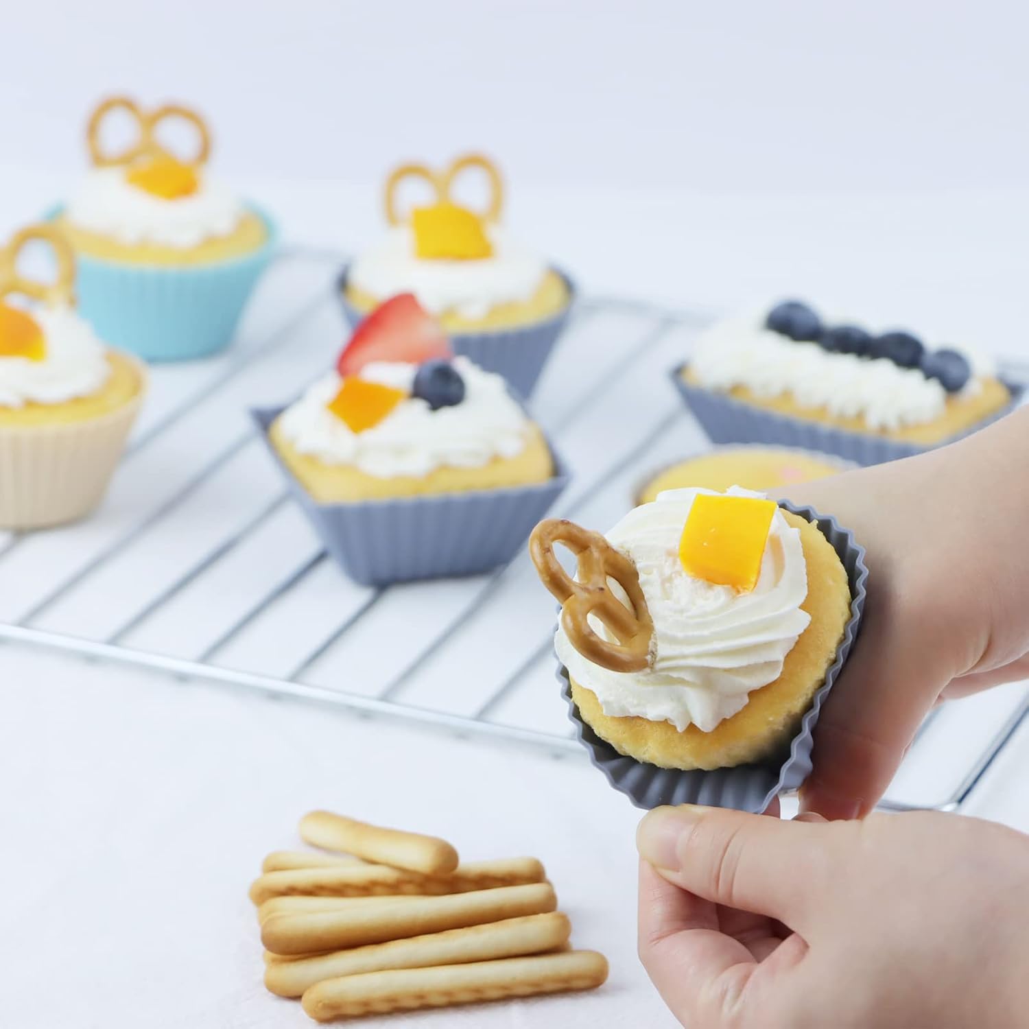 - A Variety of Shapes and Colors: Featuring three shapes-round, square, and rectangular. The diverse shapes and vibrant colors of these silicone cupcake liners enhance the visual appeal of food, making it more fun and enticing, especially for picky eaters, thereby increasing their willingness to eat.