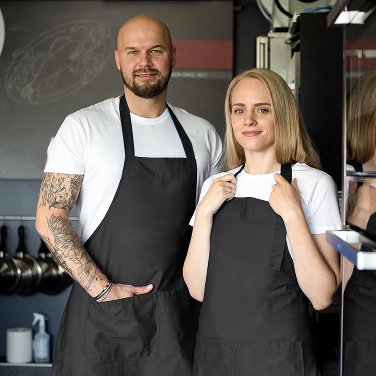 - 【Value Pack】: 4 Packs apron bulk set is the best value for bib aprons. These aprons are available with 2 pockets as well as 3 pocket. Made for heavy duty restaurants at a price convenient for home use