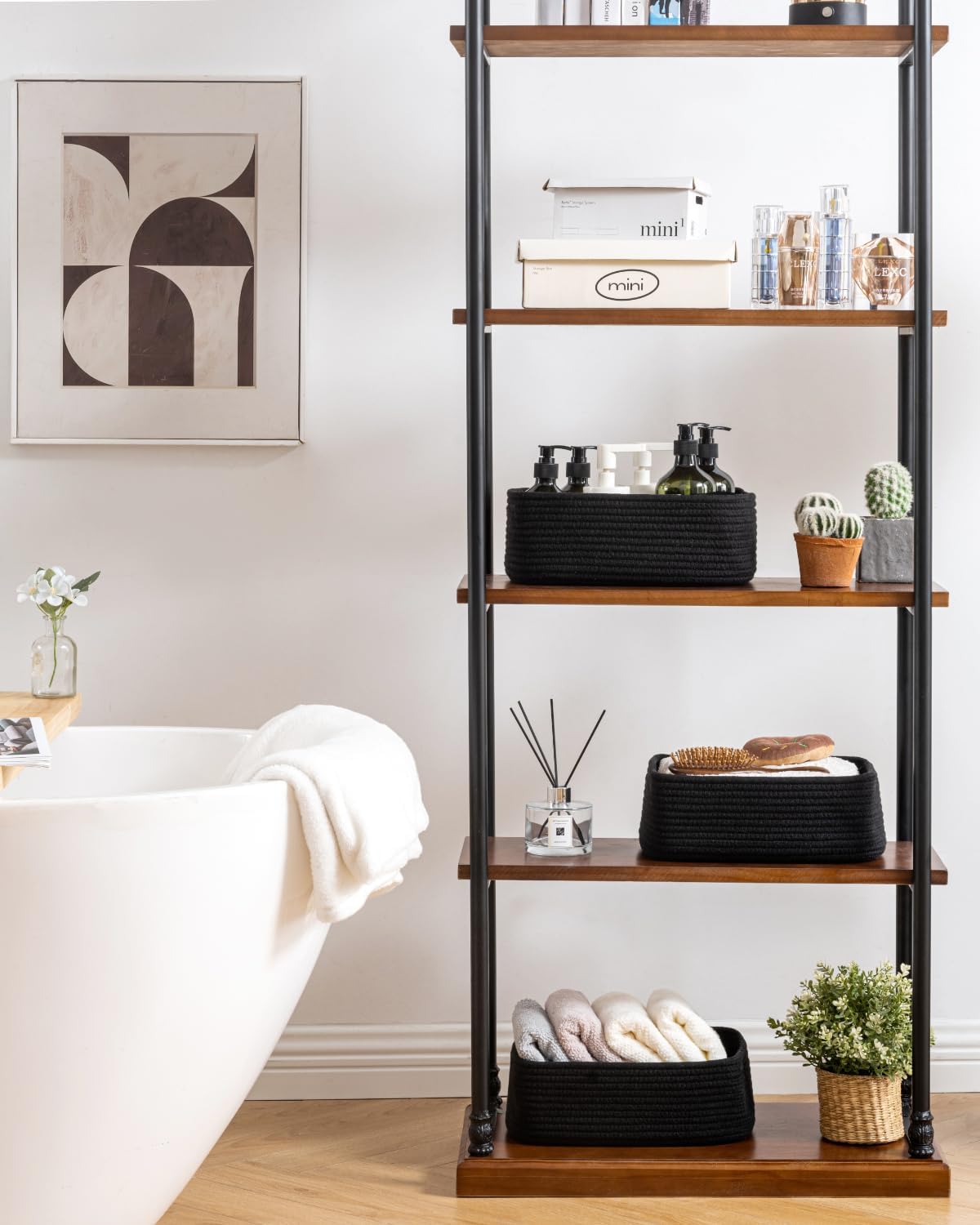 - [ Elegantly Designed to Match Any Décor ] Our small rope basket creates a minimalist appearance, and it adds a touch of warmth and texture to any room. The classic solid color design ensures seamless integration with your existing aesthetics, complementing any decoration. Perfect as decorative storage baskets for shelves, cabinets, and any open display space, making them a stylish and practical addition to any decor, enhancing the overall aesthetics of your room