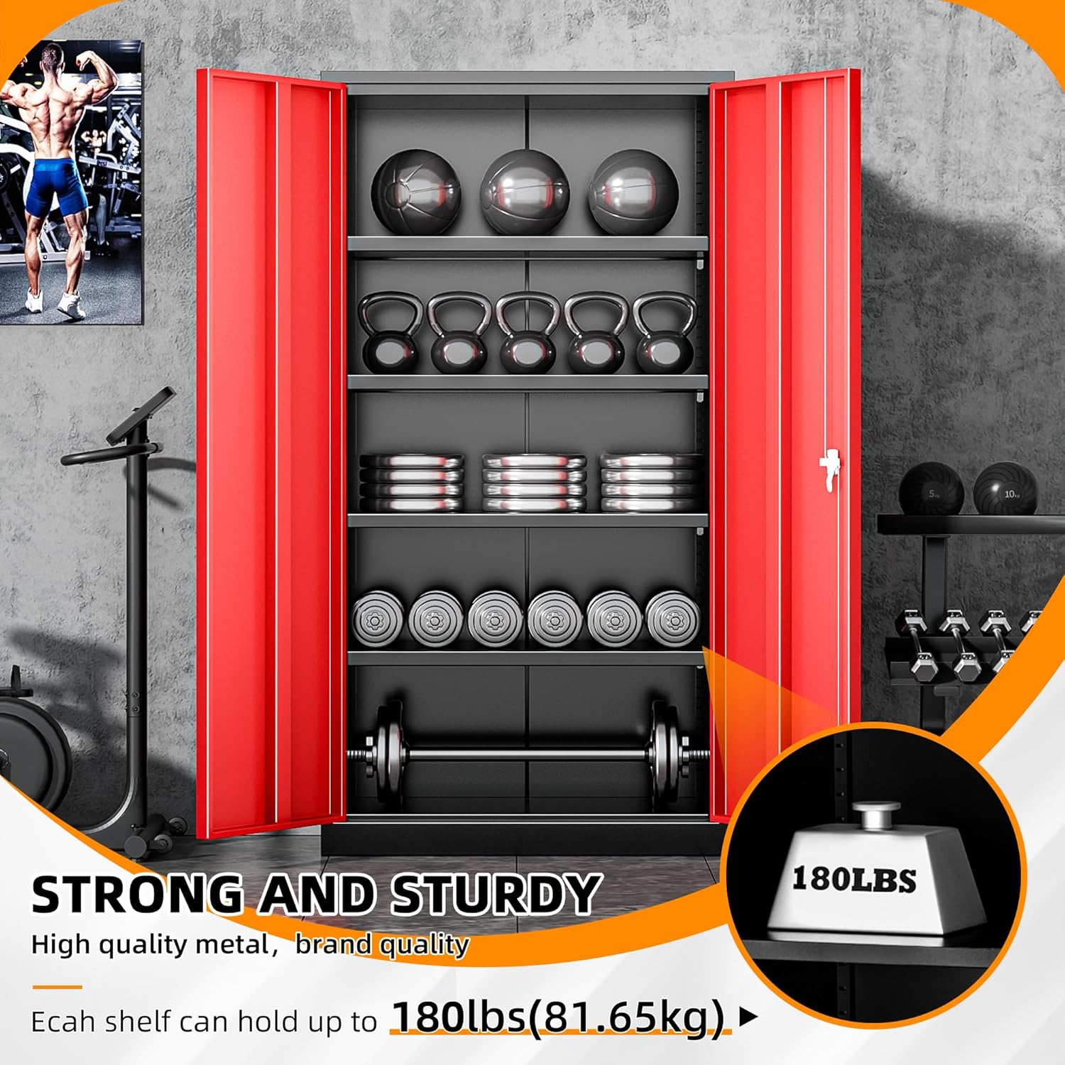 - 【Large space storage】:Intergreat new 2025 upgraded oversized metal file cabinet, 72 X 32 X 16 inch huge red metal storage cabinet can meet most storage needs. The lockable steel garage storage system cabinet with two doors comes with four removable shelves to hold different-sized items as needed. Tool steel storage cabinets are a good choice for businesses.