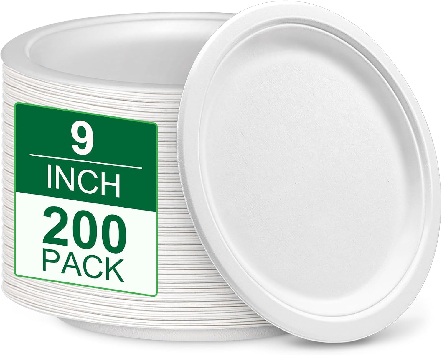 Disposable Paper Plates 9 inch, 200 Pack White Paper Plates Bulk, Eco Friendly Biodegradable Compostable Plates, Sturdy Dinner Paper Plates Heavy Duty for Party Wedding
