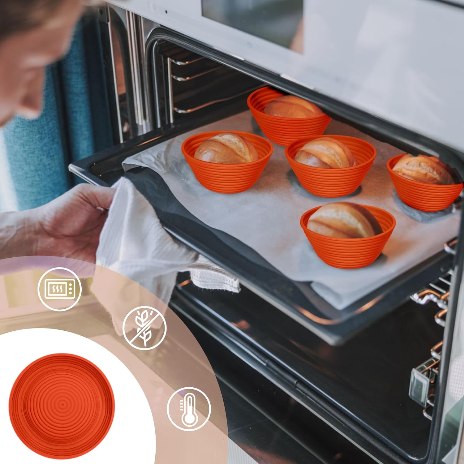 Silicone Banneton, Sourdough Bread Baskets (Set of 6, 5 Inch), Round Proofing Bread Bowls with Starter Kit, Bread Making Baking Supplies