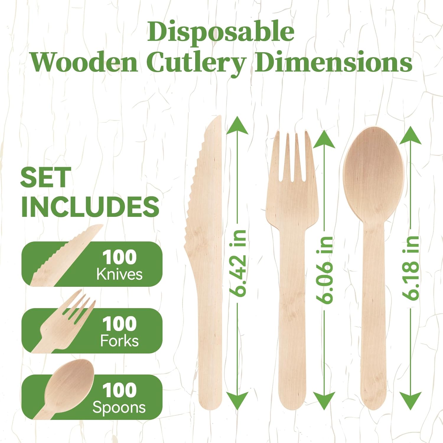 - Disposable Wooden Cutlery: This 300-count set of compostable and biodegradable wooden cutlery includes 100 knives, 100 forks, and 100 spoons, offering a comprehensive and cost-effective solution for every meal