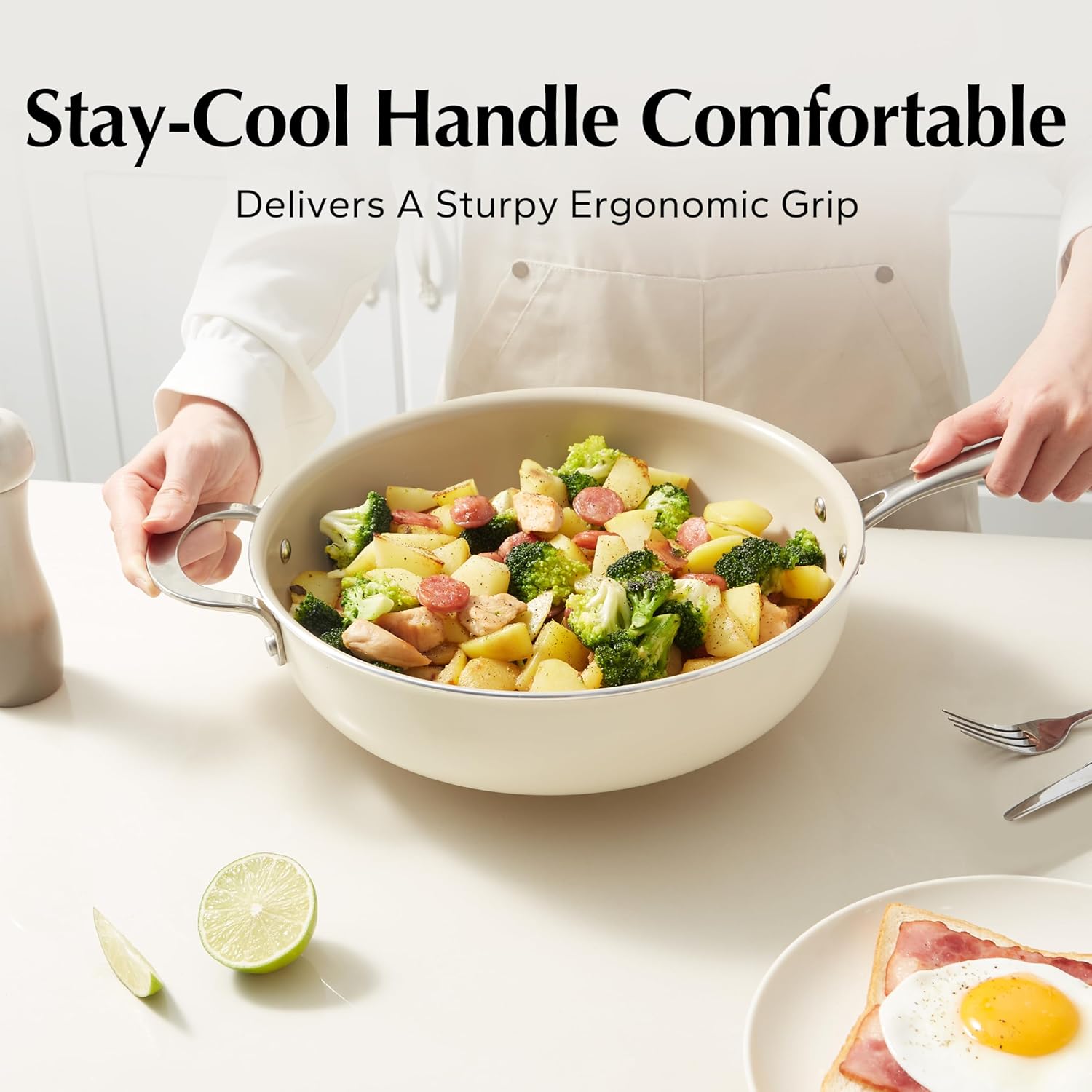 Redchef Ceramic Saute Pan with Lid, Nonstick Deep Frying Pan, 5QT Jumbo Cooker with Helper Handle & Lid, Non Toxic Ceramic Cooking Pan, Chef Pan, Dishwasher & Oven Safe, PFAS PFOA & PTFE Free