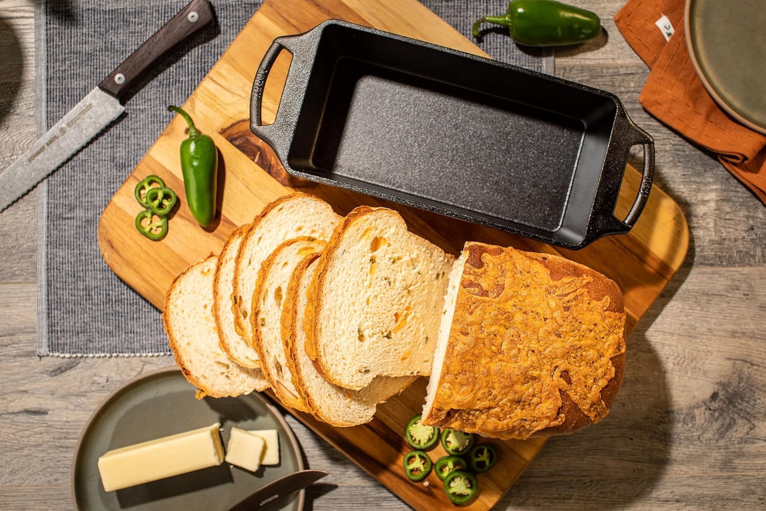 - YOUR NEW GO-TO LOAF PAN: The Lodge Cast Iron Loaf Pan is the perfect kitchen tool for beginners, home cooks and bakers. This cast iron loaf pan is crafted in America with iron and oil, its naturally seasoned cooking surface creates an easy-release and improves with use.