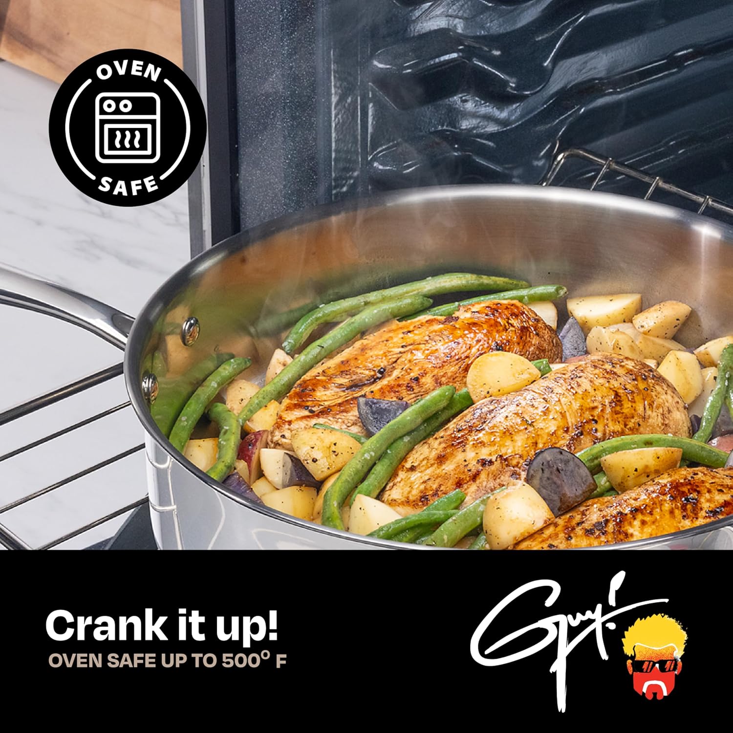 Guy Fieri's Flavortown 3.2-Quart Stainless Steel Sauce Pan with Tempered Glass Lid - Kitchen Cookware with Tri-Ply Base, Oven Safe to 500°F, Dishwasher Friendly, Works with Gas & Induction Cooktops