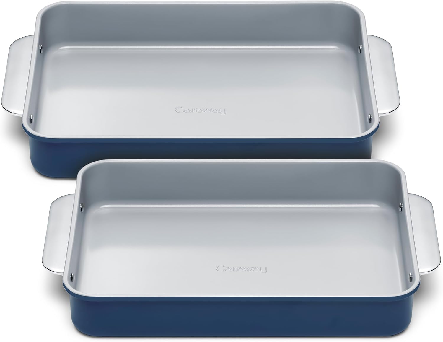 Caraway Non-Stick Ceramic 9”x13” Rectangle Pan Duo - Naturally Slick Ceramic Coating - Non-Toxic, PTFE & PFOA Free - Perfect for Brownies, Lasagnas, and More - Navy