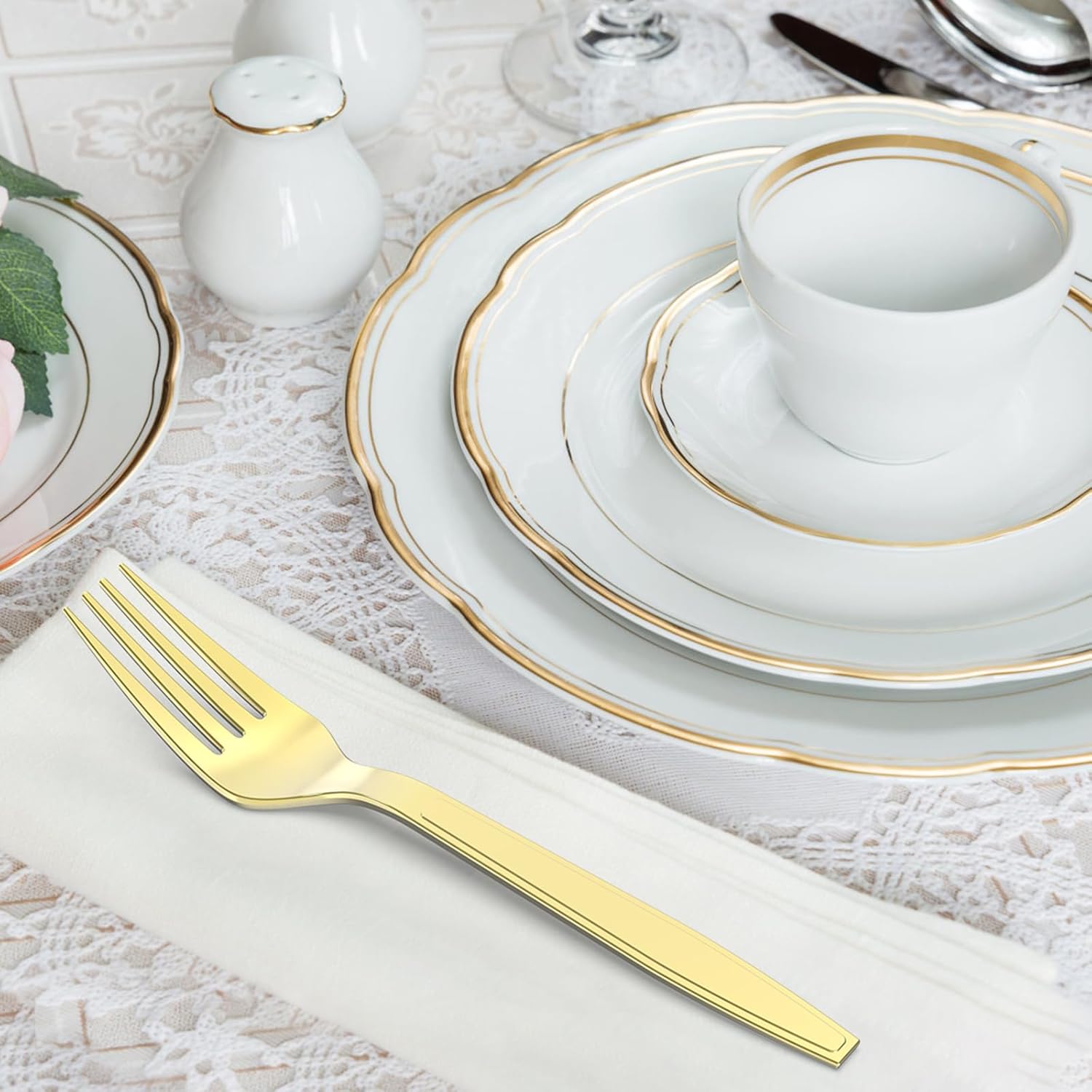 - 【Heavy Duty】: Each plastic fork weights 5.3g, our heavy duty gold forks disposable with edge thickened design won’t bend easily.