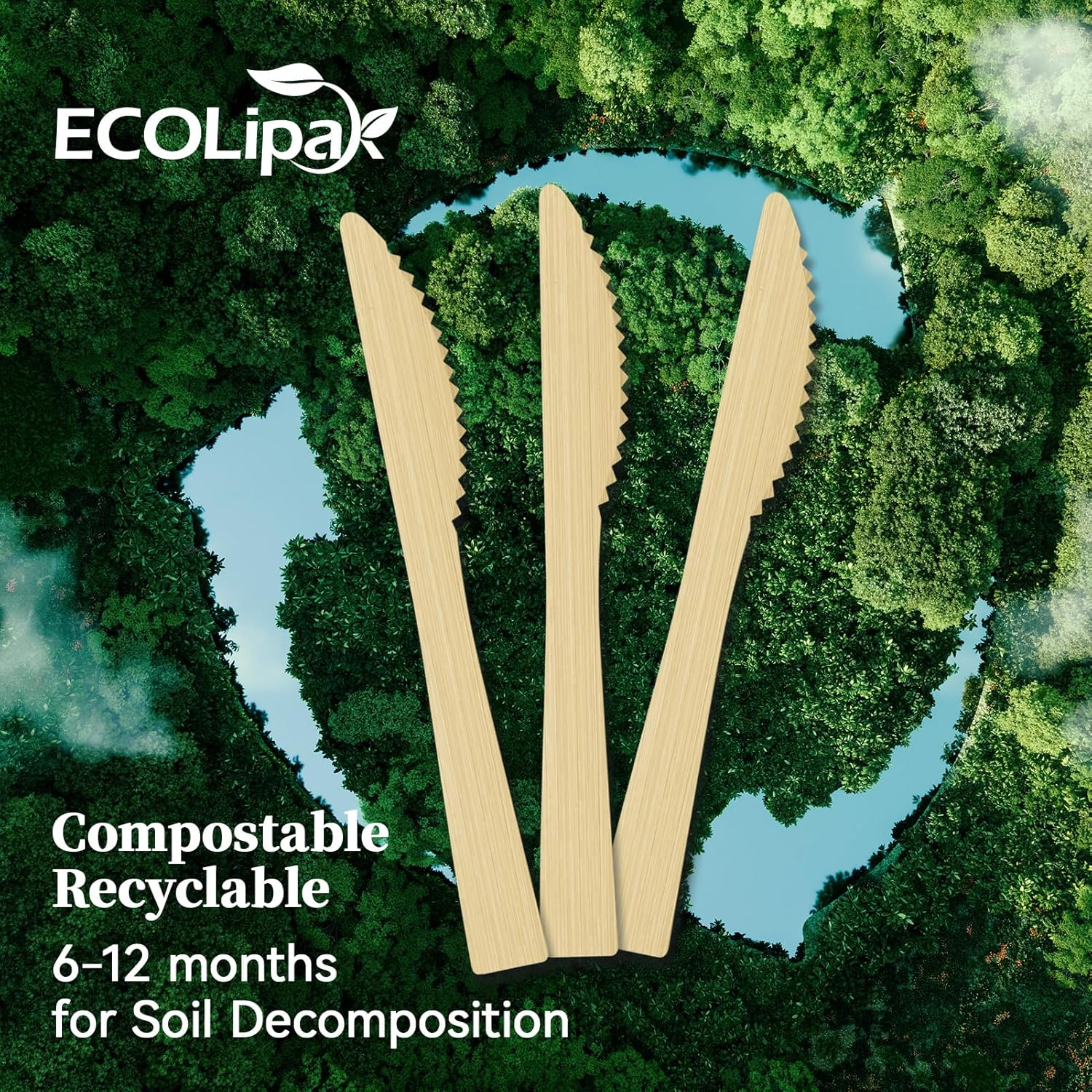 ECOLipak 300 Count Disposable Bamboo Knives, 6.7 Inch Bamboo Compostable Disposable Knives for Party, Wedding, Camping, Traveling, Family Dinners, Large Events