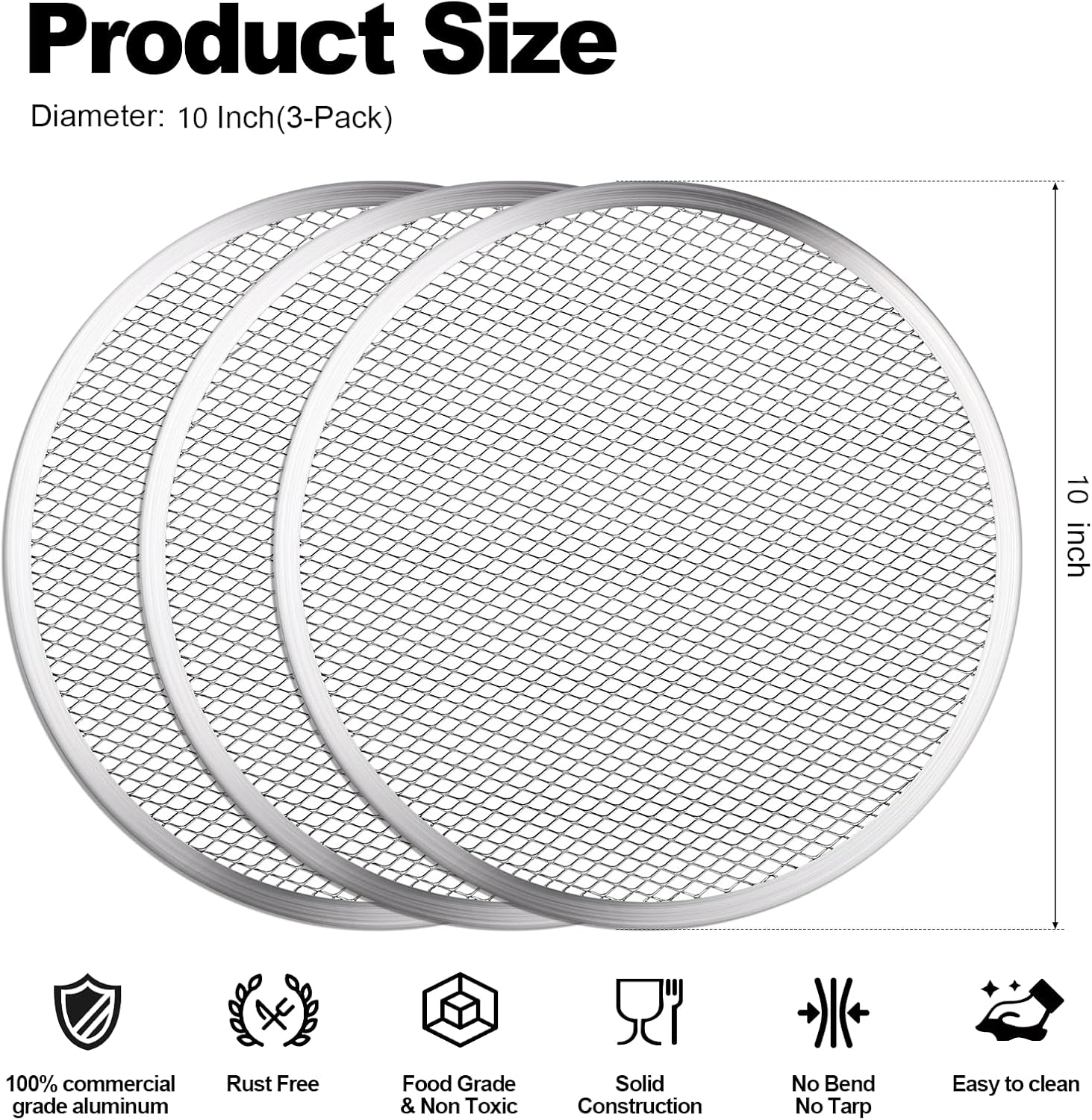 - Premium Non-Stick Coating: The 10-inch pizza screen is designed with a unique non-stick coating, so you don't have to worry about your food sticking to the surface while baking, and you can easily remove the pizza and avoid the hassle of cleaning. It makes your kitchen cleanup easier and saves you valuable time