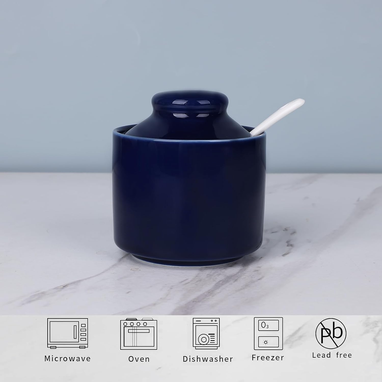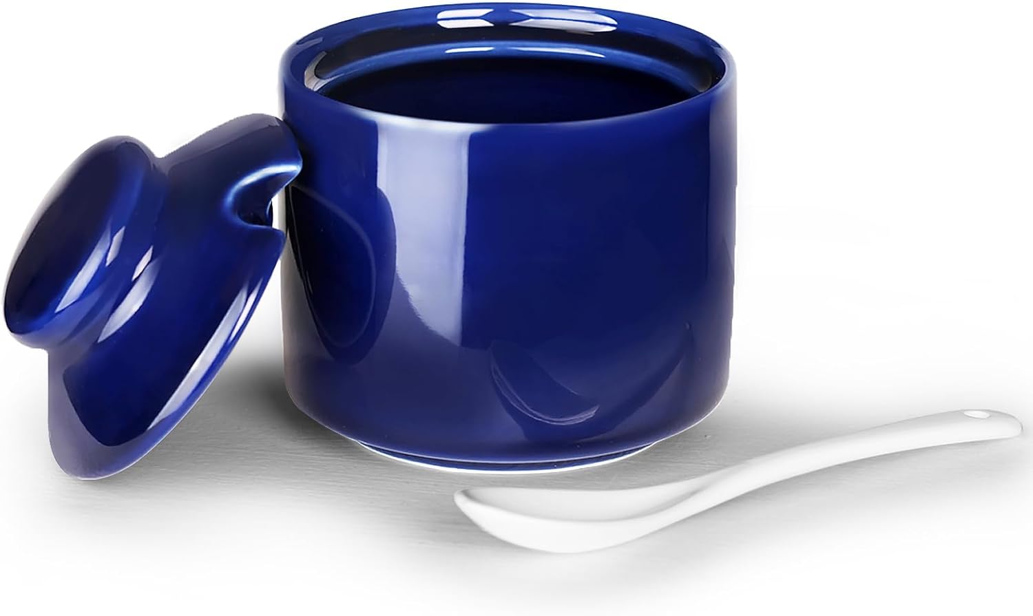 HAOTOP 8 oz Sugar Bowl with Lid and Spoon,Ceramic Sugar Jar Sugar Dispenser Sugar Container Coffee Bar Accessories, Kitchen Countertop Canisters (Navy)