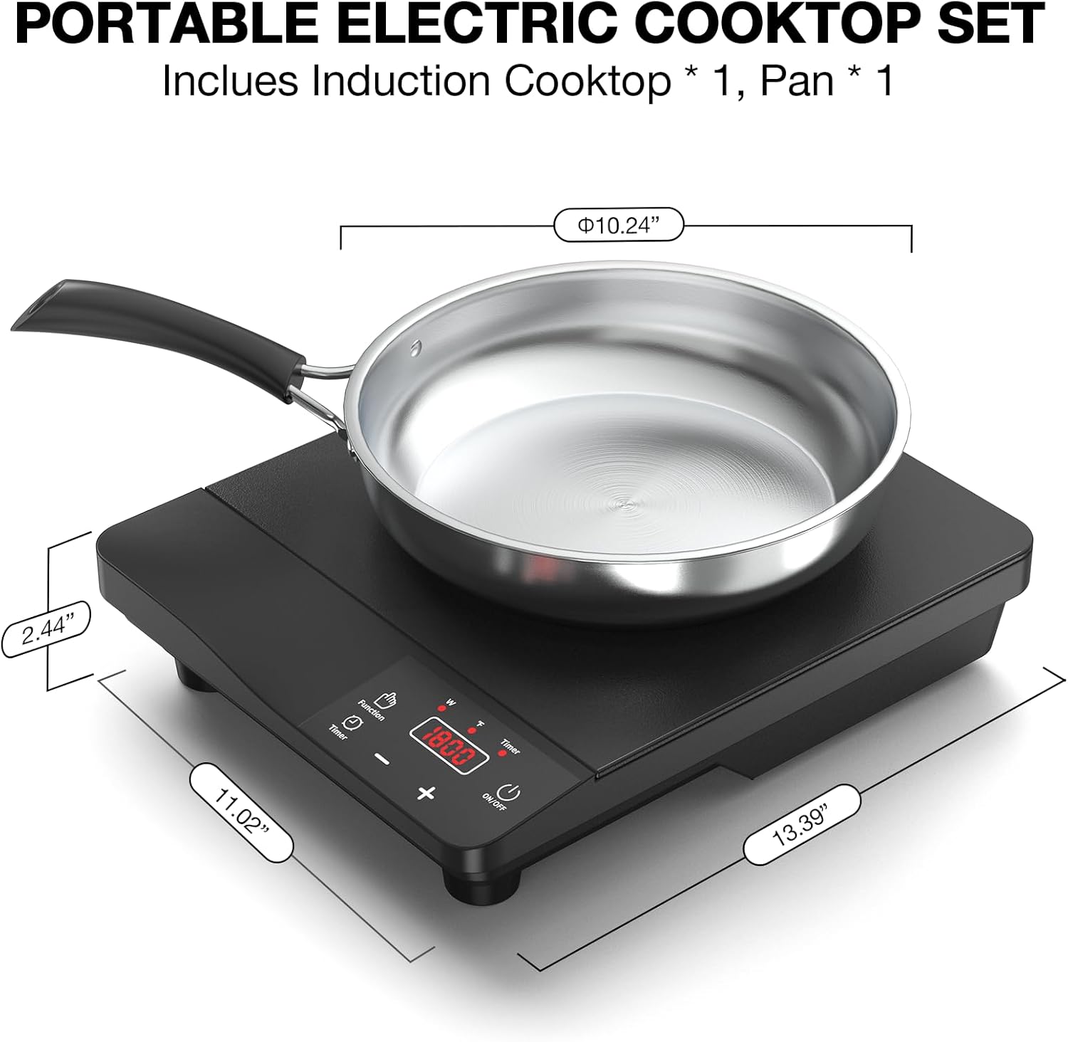- Portable Induction Cooktop:The size of the induction cooktop is 14.17*11.02*2.75 inches, the size of the fry pan is 10.24 inches, the right size will not take up space in your kitchen, easy to carry, not too difficult to clean, the smooth glass surface ensures that spills and splashes are easily wiped away, making your stove look like new after each use.
