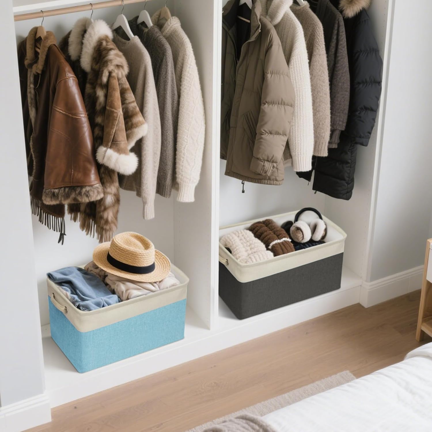 - [VERSATILE STORAGE] These fabric storage baskets are perfect for organizing a wide range of items, including clothes, books, and other household items. They are designed to fit perfectly on laundry organization and storage, in closets, or under beds, maximizing your storage space and keeping your home clutter-free