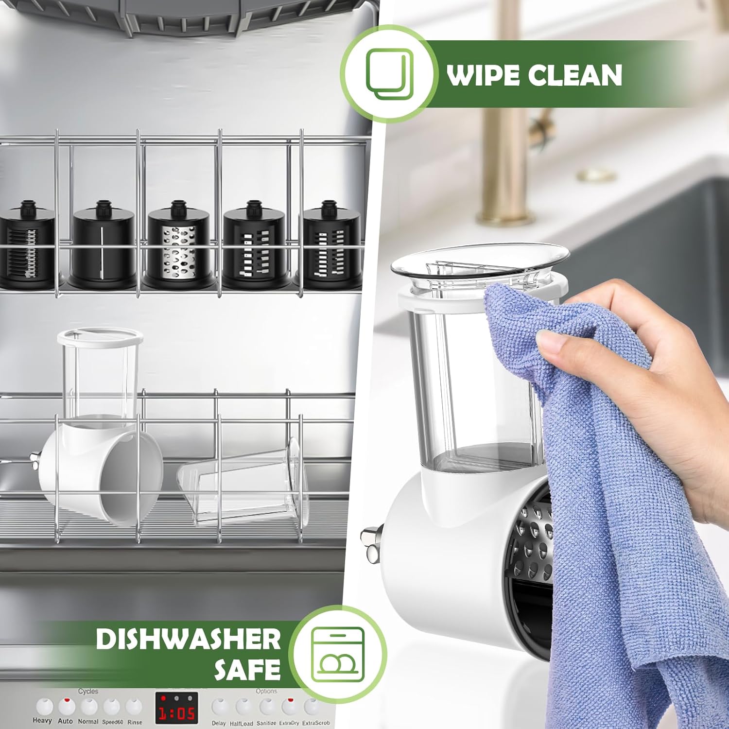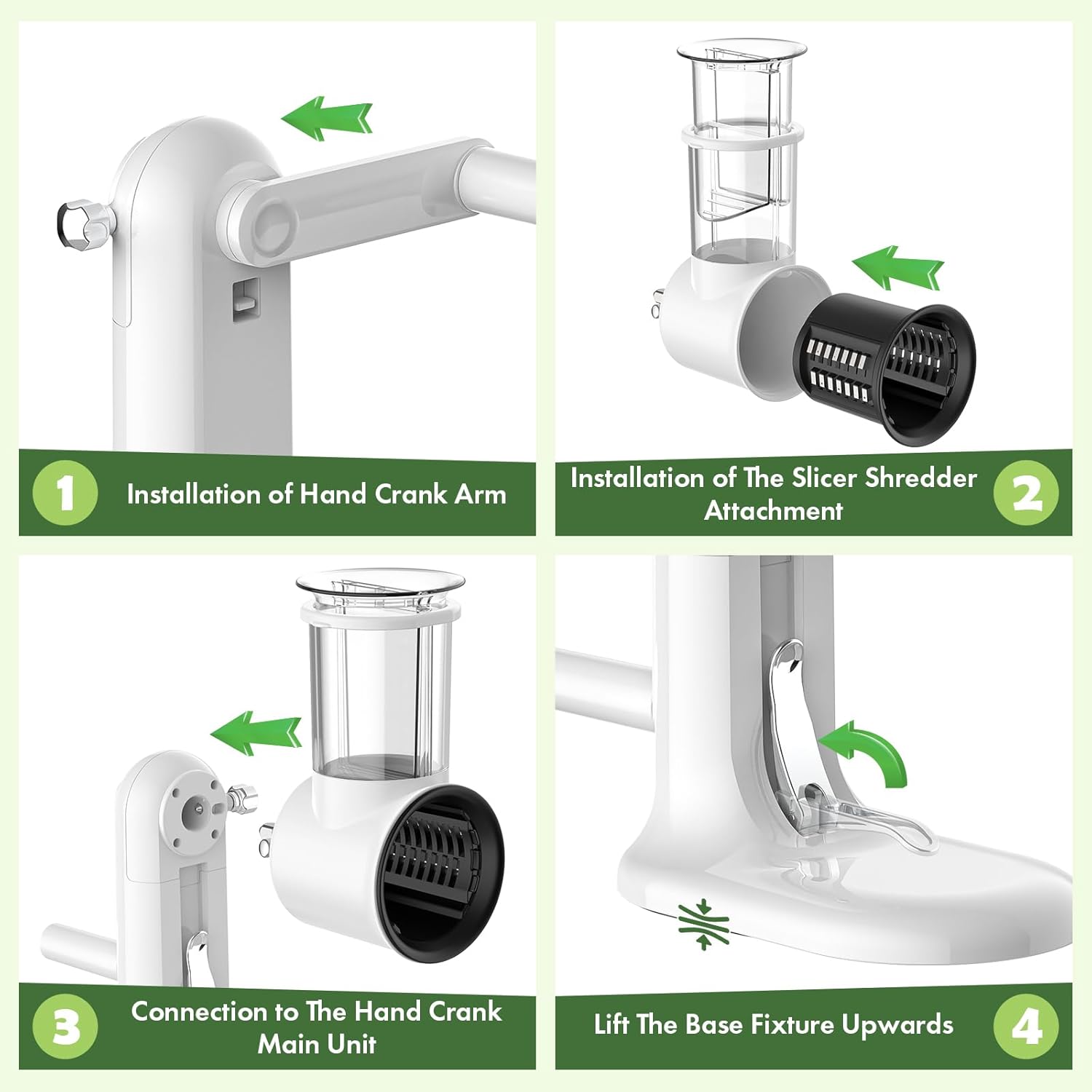 - Easy Assembly and Disassembly: The hand crank cheese grater is easy to use. Attach the hand crank arm and the salad machine body to the base, and you're ready to use it. The blades of slicer shredder are designed to be removable, saving storage space and making it easier for you to clean thoroughly.