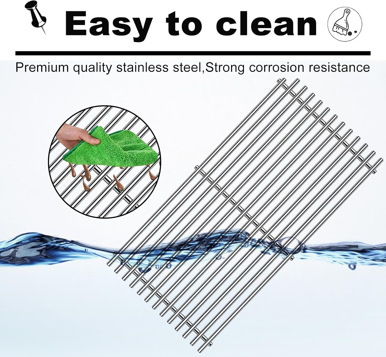 - Grill Grates Design: 9MM thickness, rapid preheating and even heating, round bars leave beautiful sear mark on food, to create delicious barbecue flavor in the outdoor