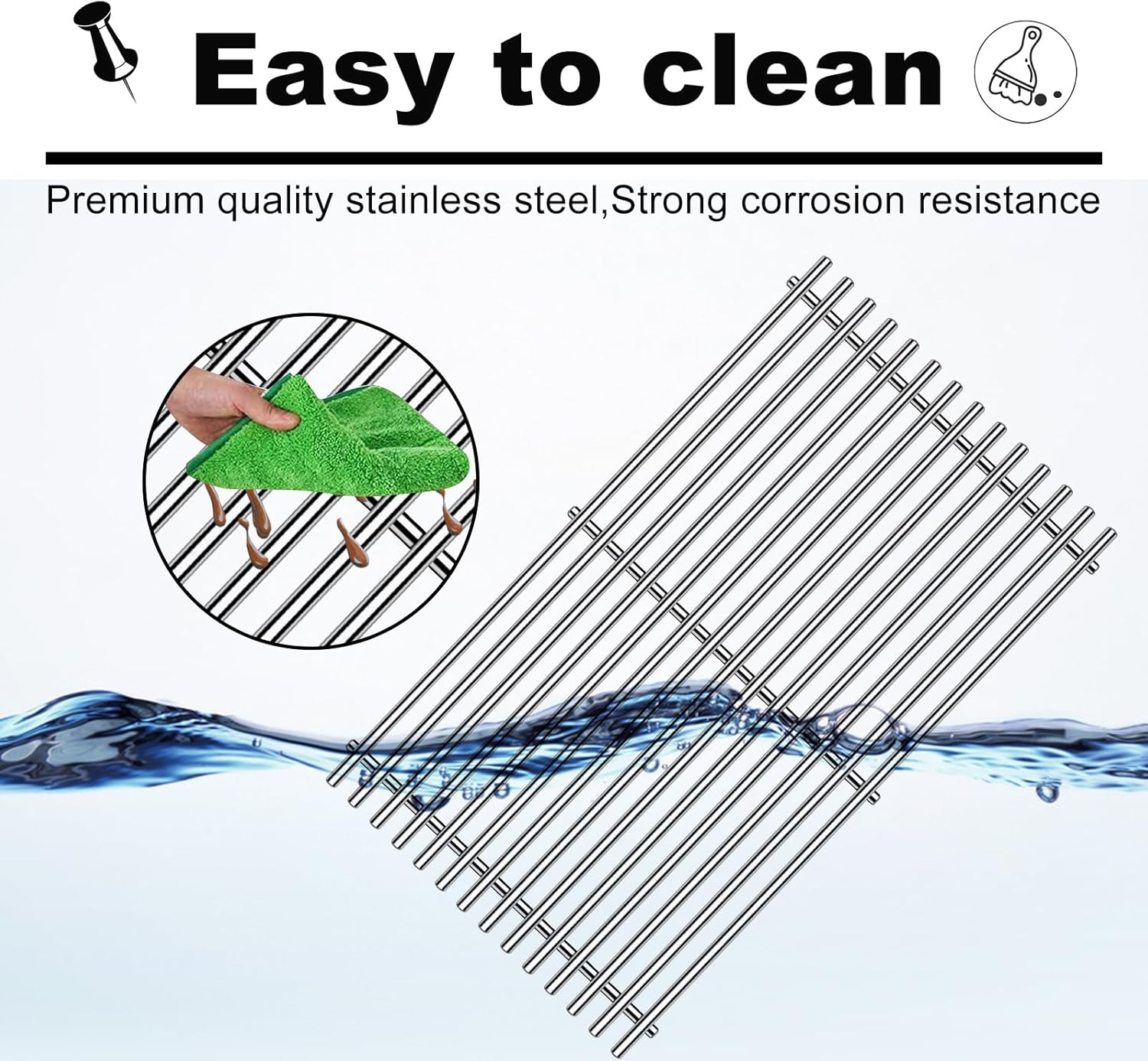 - Durable Material: Made of 9MM heavy duty stainless steel to ensure long-lasting use, Anti oxidation, anti corrosion, not easy to rust, GS4 for weber grill grate