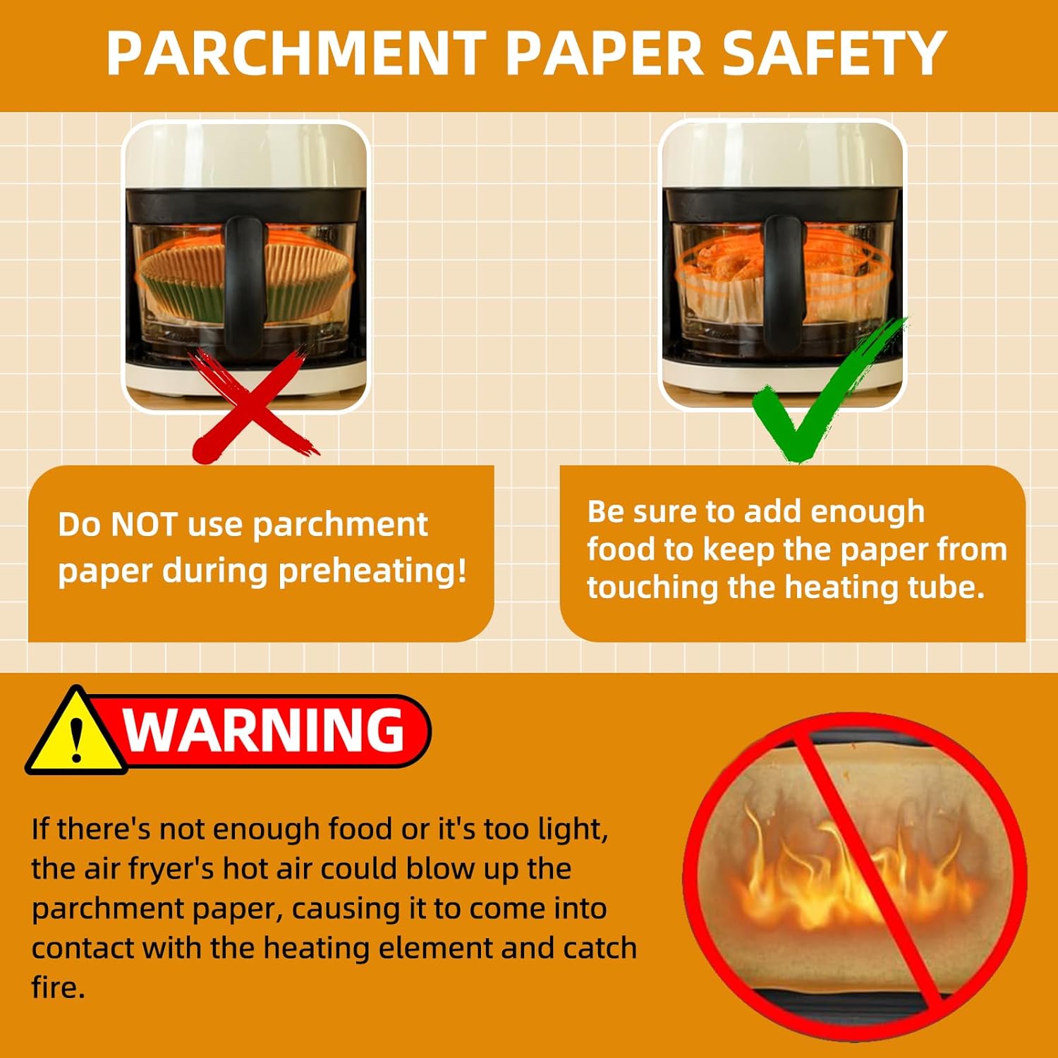 - Safe and Degradable Material - HONYAO baking paper is made of 100% food grade pulp, is non-toxic, bpa free and hygienic, it is waterproof, oil-proof, non-sticky, 100% healthy and heat resistant. Each piece of disposable air fryer paper undergoes a rigorous disinfection process to achieve 100% food safety. The material of disposable paper is degradable and environmentally friendly.