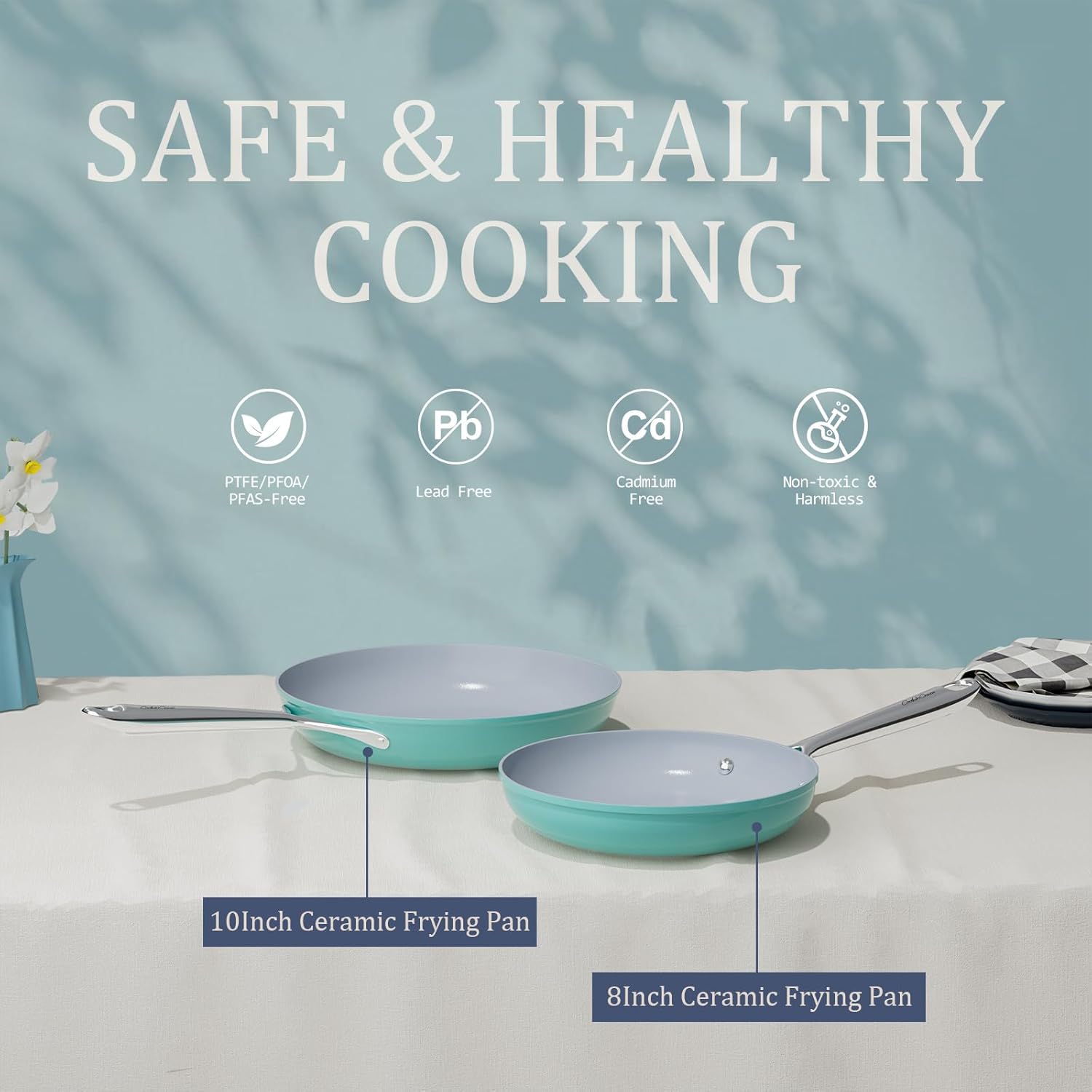 - ๐ญ๐ฌ๐ฌ% ๐๐จ ๐๐๐ซ๐ฆ๐๐ฎ๐ฅ ๐๐ก๐๐ฆ๐ข๐๐๐ฅ๐ฌ & ๐ก๐ผ ๐ฃ๐๐๐ฆ/๐ฃ๐ง๐๐/๐ฃ๐๐ข๐ - Superior to Teflon Pans: Crafted with 3X Durable Ceramic Coating, our 8-inch nonstick frying pan is 100% free from PFAS, PTFE, PFOA, lead, and cadmium. Healthier cooking with 50% less oil โ perfect for eggs, pancakes, or grilled cheese. Proven Safety: 800+ lab tests ensure zero chemical release even at 500ยฐF.