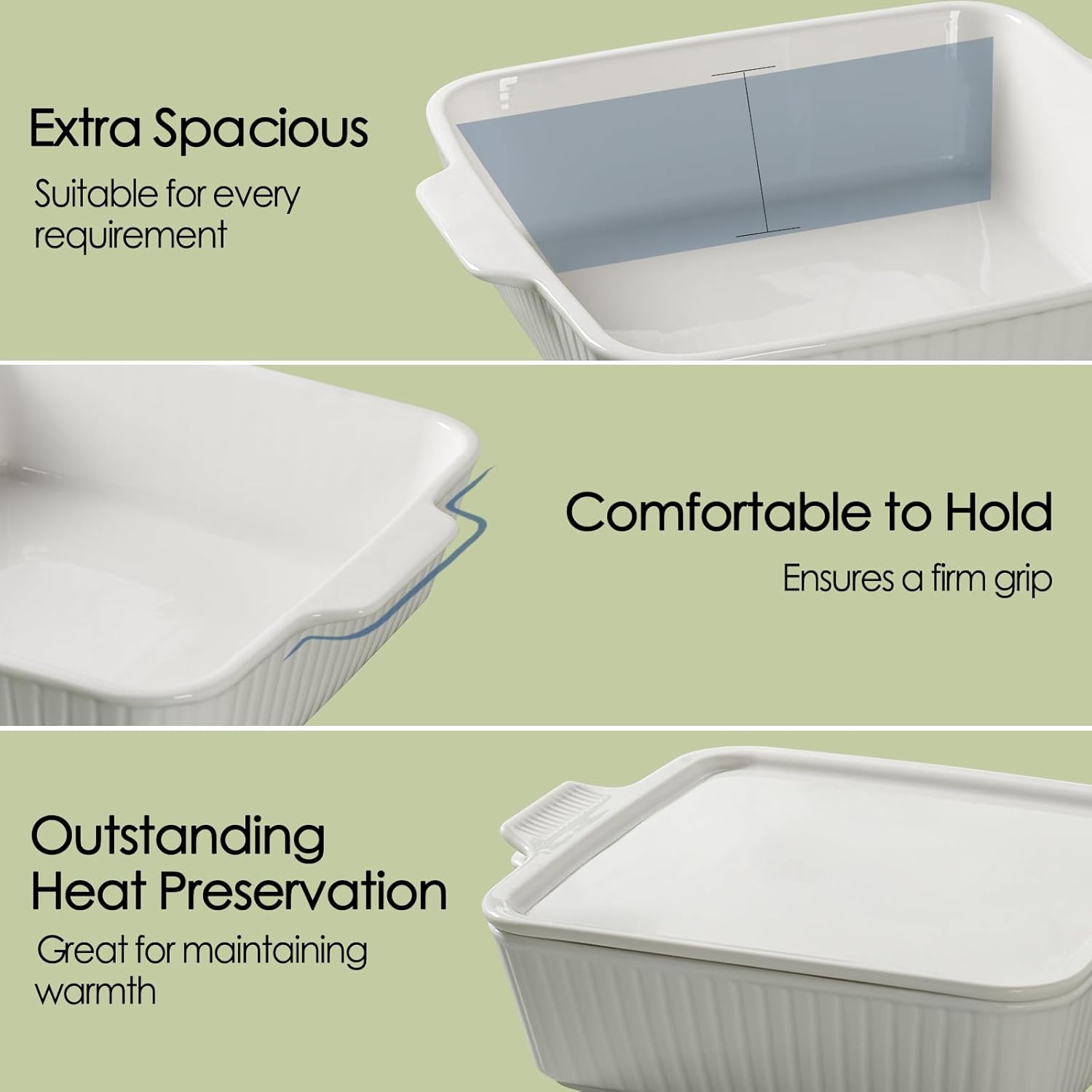 - MULTIFUNCTIONAL LID: The included lid serves multiple purposes, keeping your dishes warm and retaining moisture for thoroughly heated meals. Casserole dish with lid can also double as a small baking tray for simpler dishes, adding convenience and fun to your cooking experience.