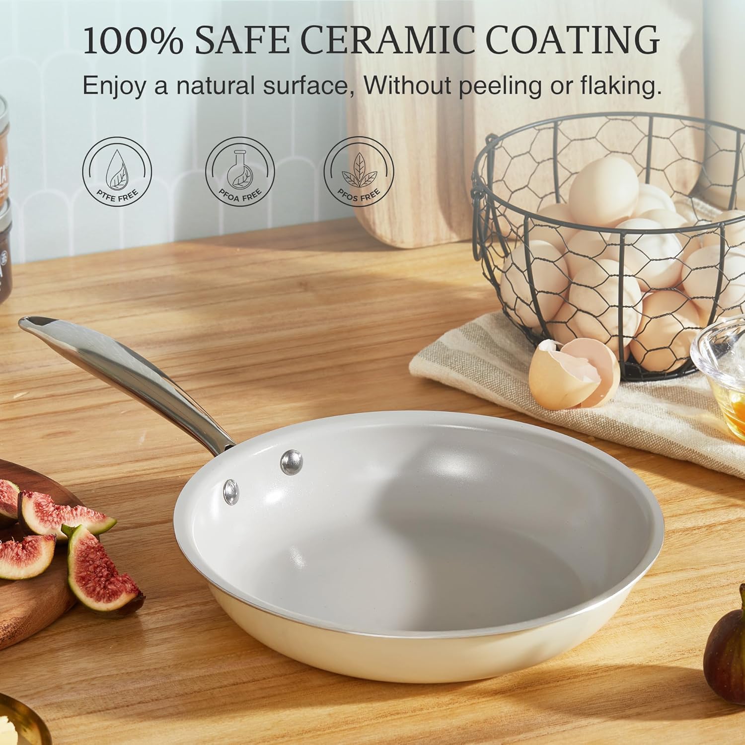 - Cook With Healthy Confidence: No Teflon, no worries, no sticking! These pans feature a premium titanium ceramic coating that ensures the nonstick performance that your food can slides right off the surface with ease. Completely free of PFOA, PFOS, PTFE, and other harmful things, our skillet is as safe as they are effective. Enjoy healthier meals with less oil and more peace of mind, knowing your cookware is as safe as it is durable.